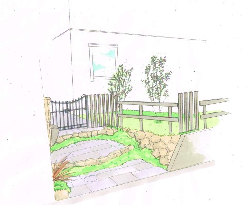 お子様もお庭で遊ぶことが増えたため、お庭の周囲にフェンスと門扉施工のご要望です。