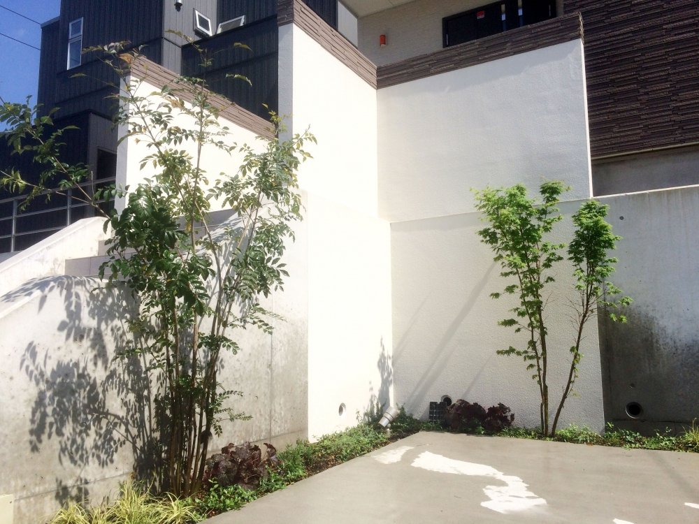 Pure White Exterior Wall and Trees:WORKS:the landscape design company based in Yokohama - FUCHISO Inc.