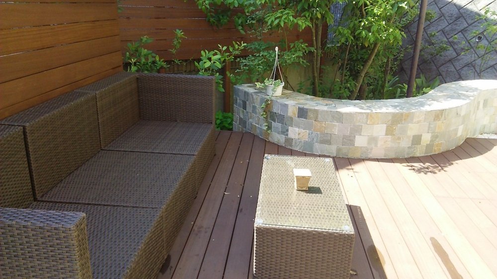 Resort-like Wooden Deck with Asian Funiture:WORKS:the landscape design company based in Yokohama - FUCHISO Inc.