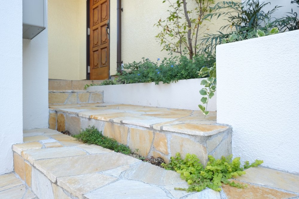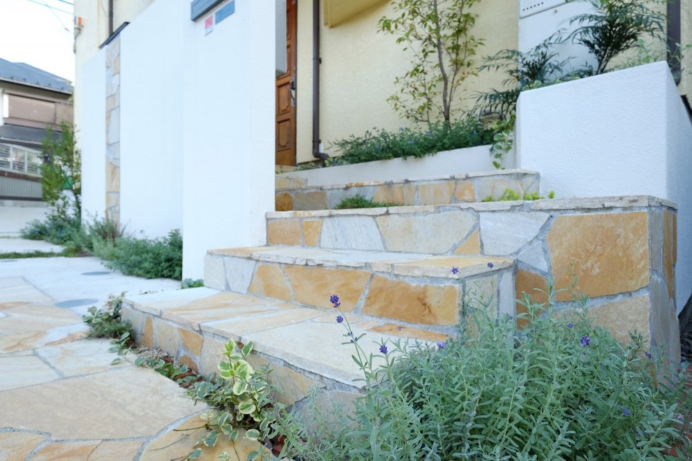 Yellowish Stone Veneer Exterior Total Design Entrance:WORKS:the landscape design company based in Yokohama - FUCHISO Inc.