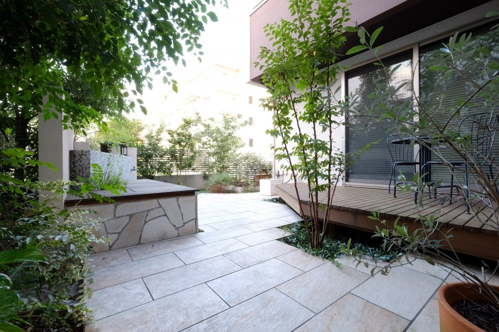 Modern Exterior Style with Antique-like Lighting and Greenery:WORKS:the landscape design company based in Yokohama - FUCHISO Inc.