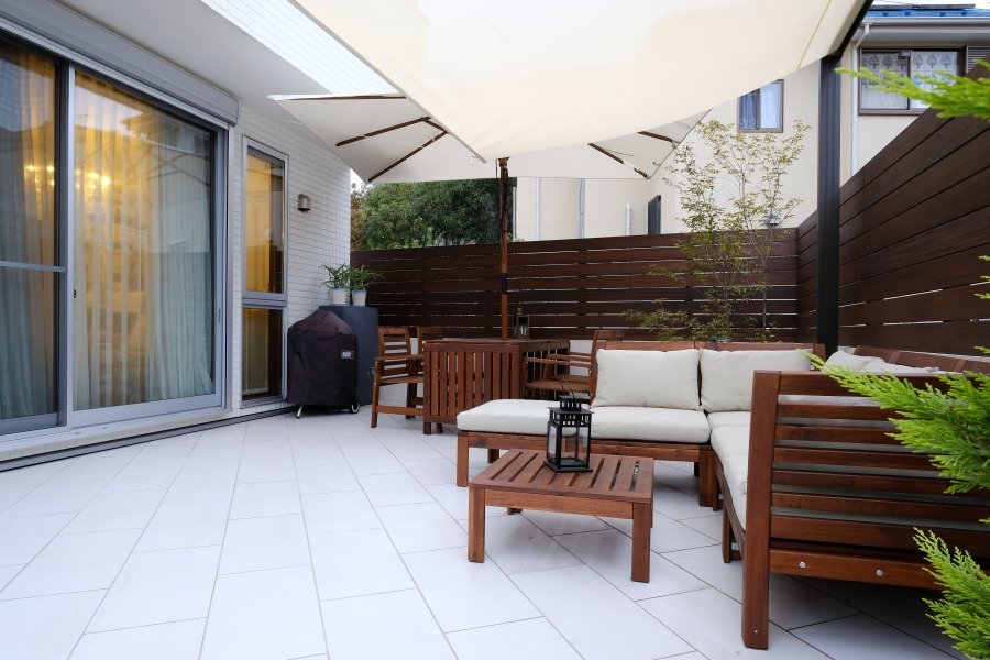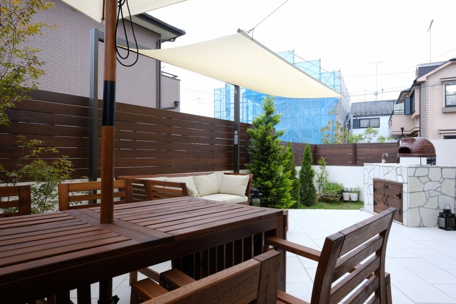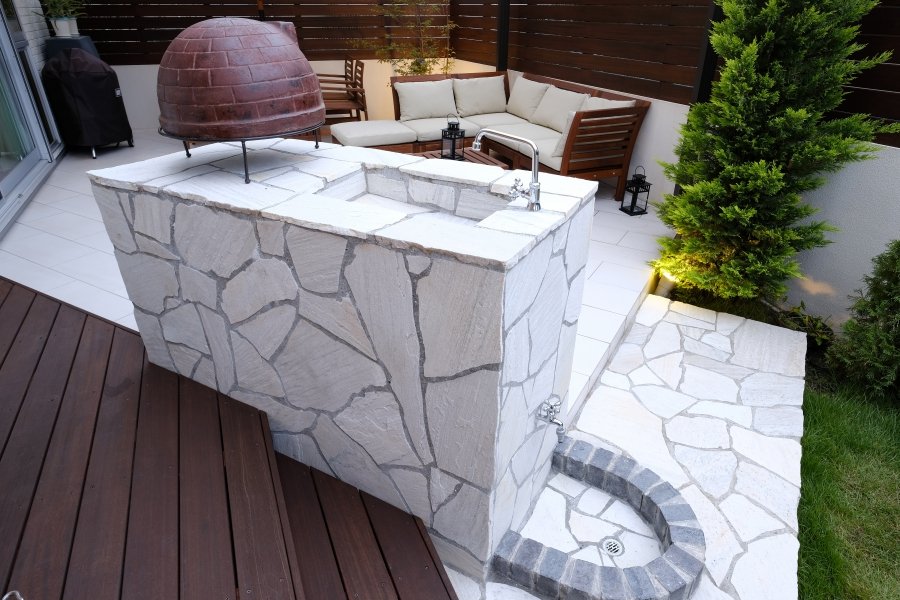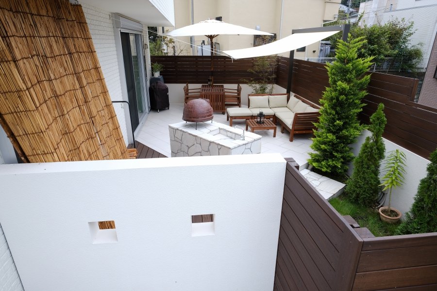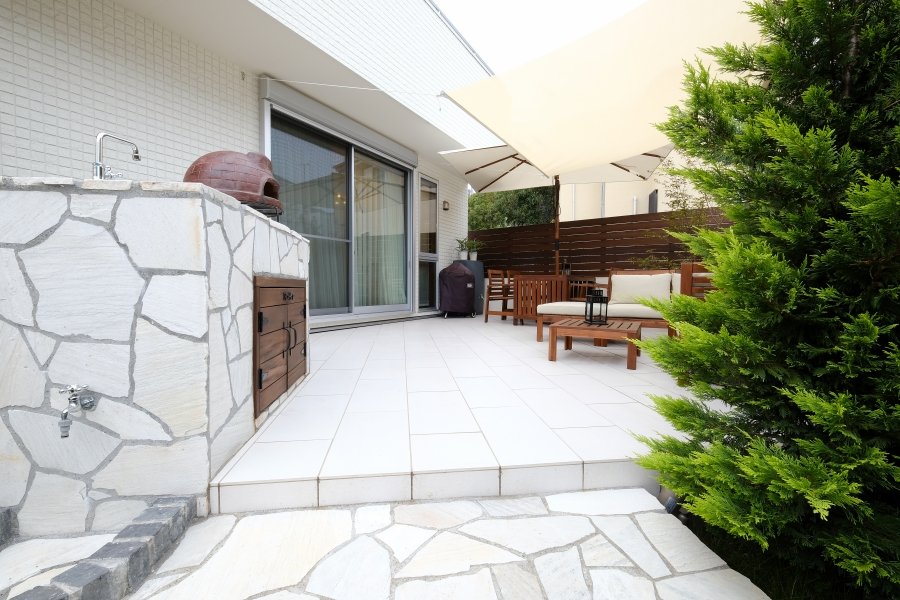 Garden Kitchen with Storage Pure White Private Space:WORKS:the landscape design company based in Yokohama - FUCHISO Inc.