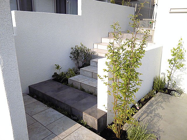 Tiled-stair Approach with Plants:WORKS:the landscape design company based in Yokohama - FUCHISO Inc.