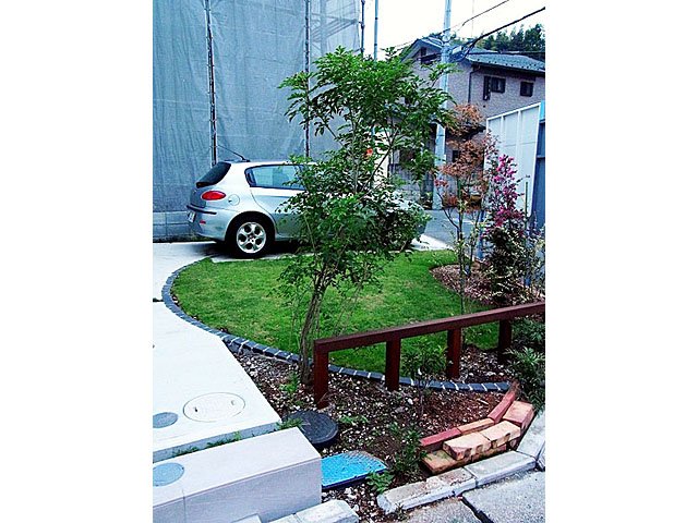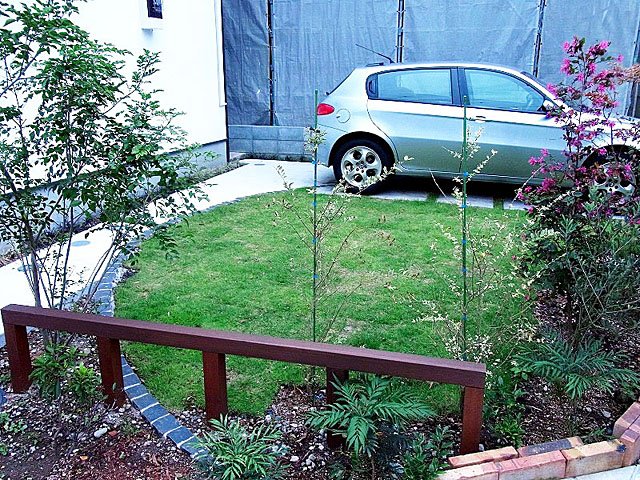 Lawn and Trees to Garden Beside Parking:WORKS:the landscape design company based in Yokohama - FUCHISO Inc.