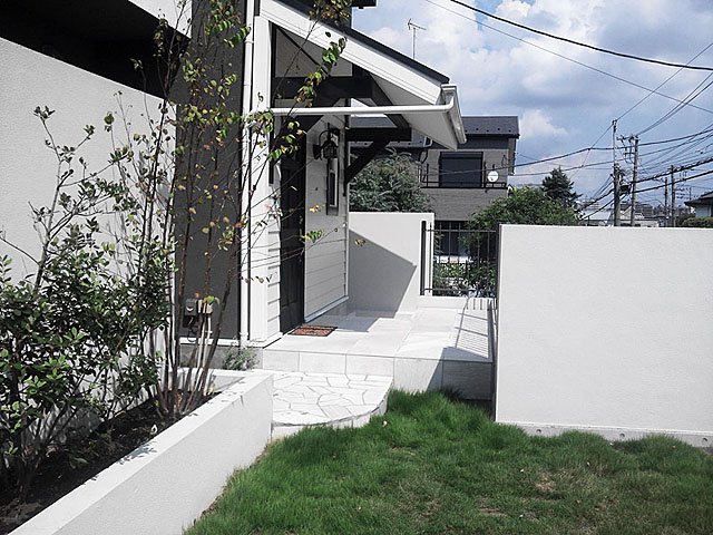 White Brick Masonry Wall and Wrought Iron Gate:WORKS:the landscape design company based in Yokohama - FUCHISO Inc.