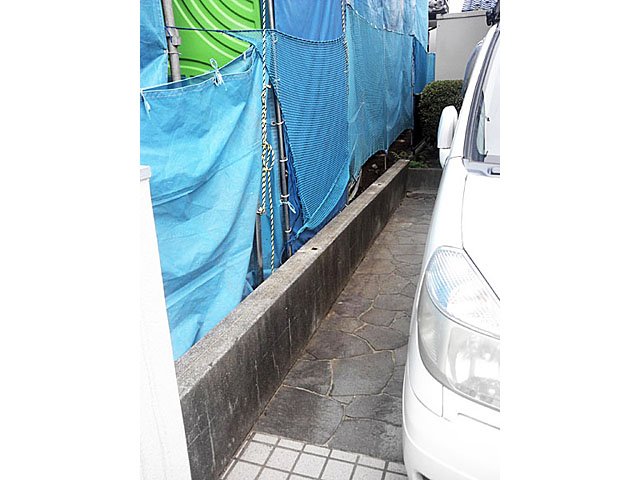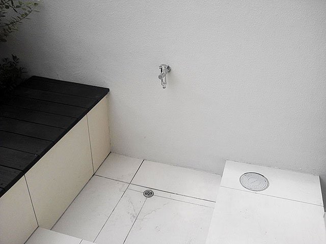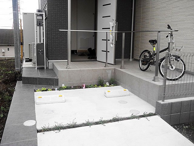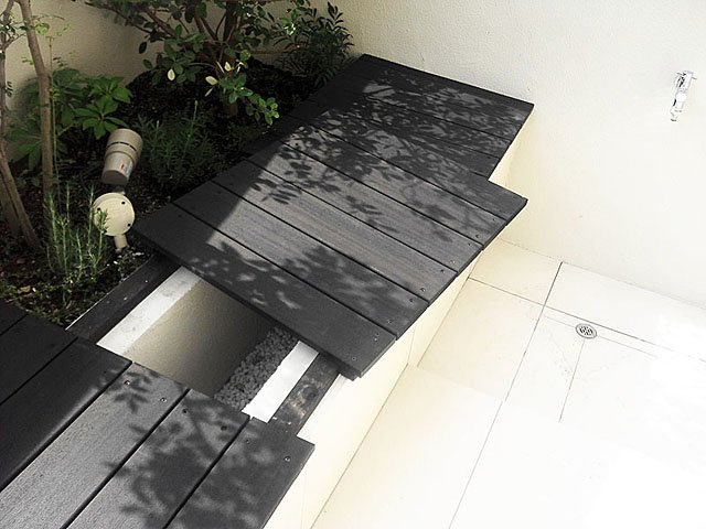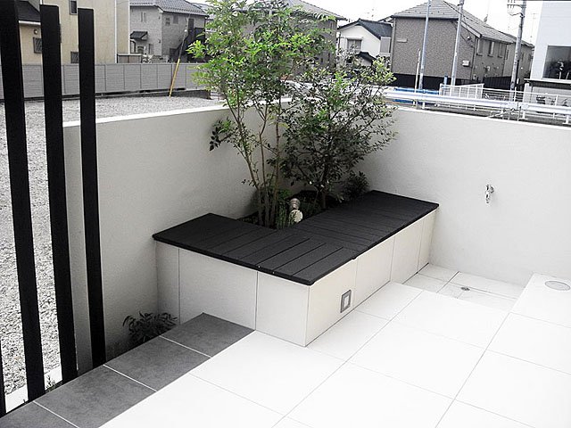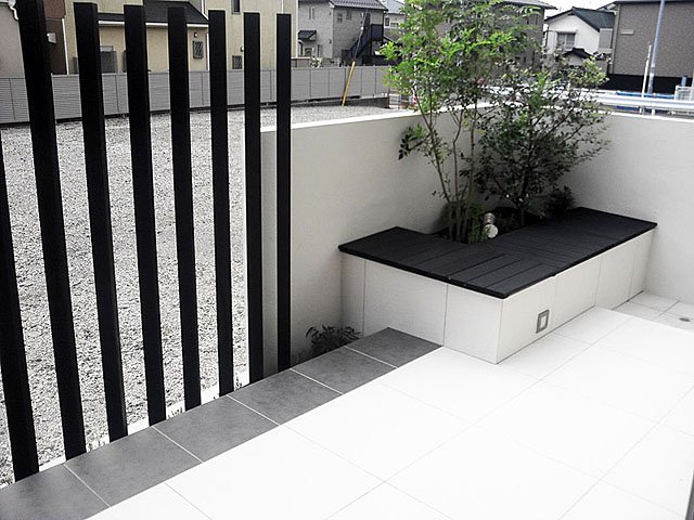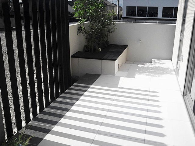 Simple Modern Exterior With White Tile and Black Wooden Sticks:WORKS:the landscape design company based in Yokohama - FUCHISO Inc.