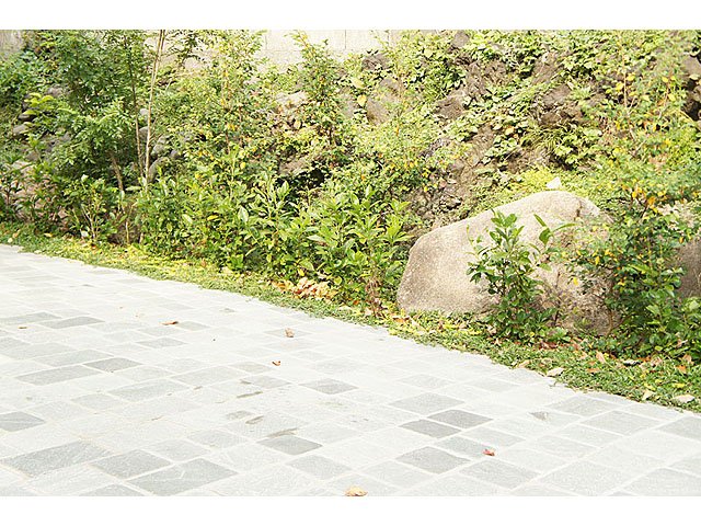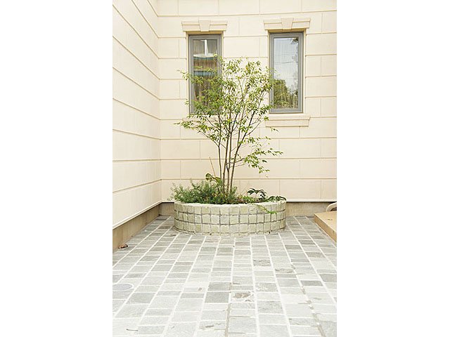 Approach Covered All Over with Grayish Tiles:WORKS:the landscape design company based in Yokohama - FUCHISO Inc.
