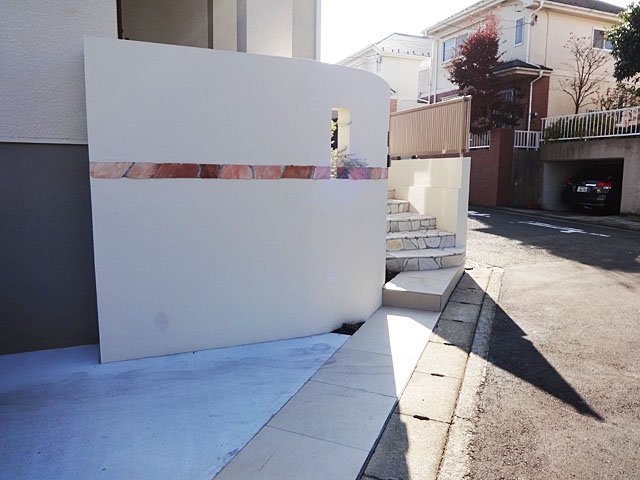 Plastered Wall with Natural Stone and Decorative Hole:WORKS:the landscape design company based in Yokohama - FUCHISO Inc.
