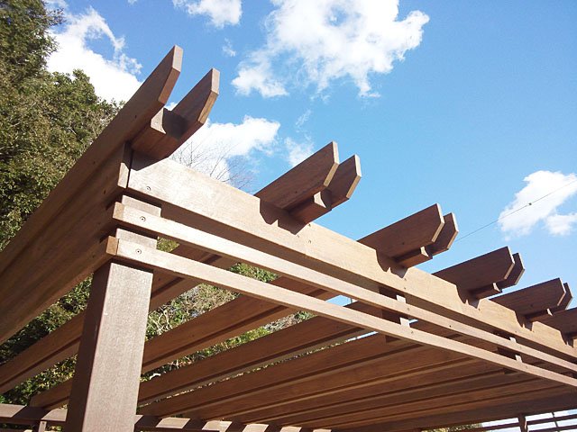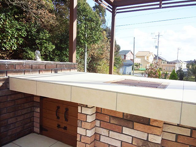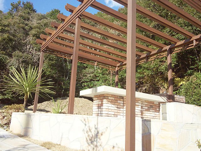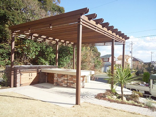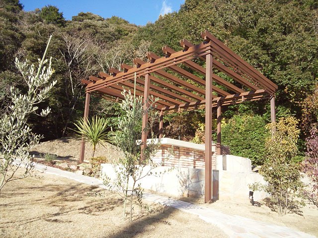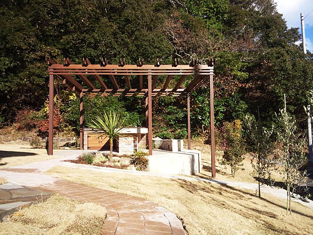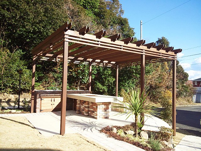 Pergola and Tile Terrace at Large Lawn Garden:WORKS:the landscape design company based in Yokohama - FUCHISO Inc.