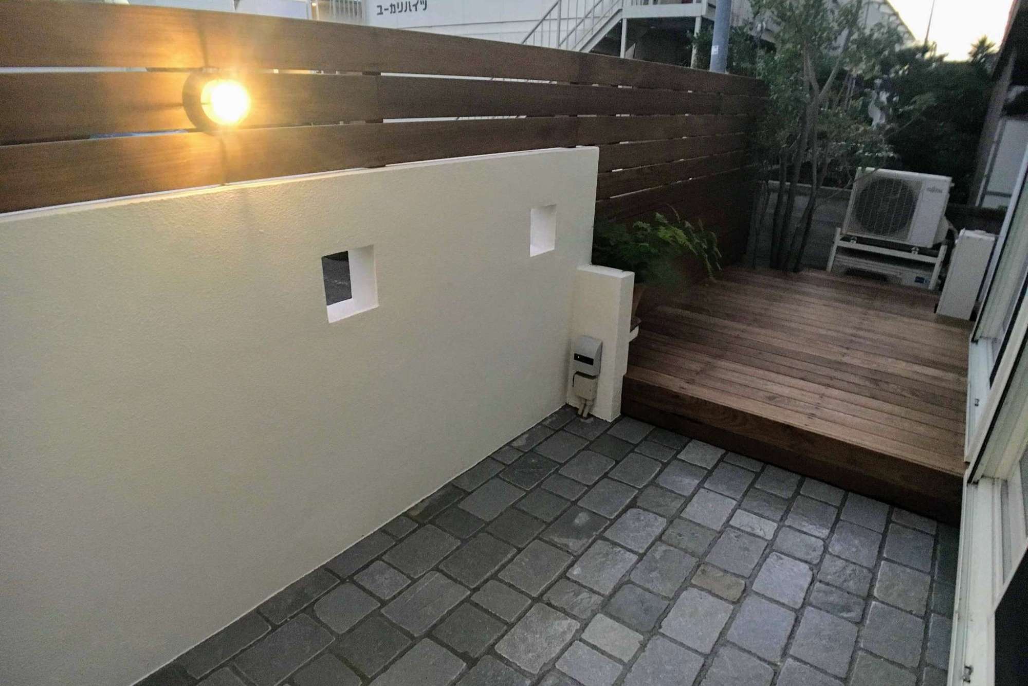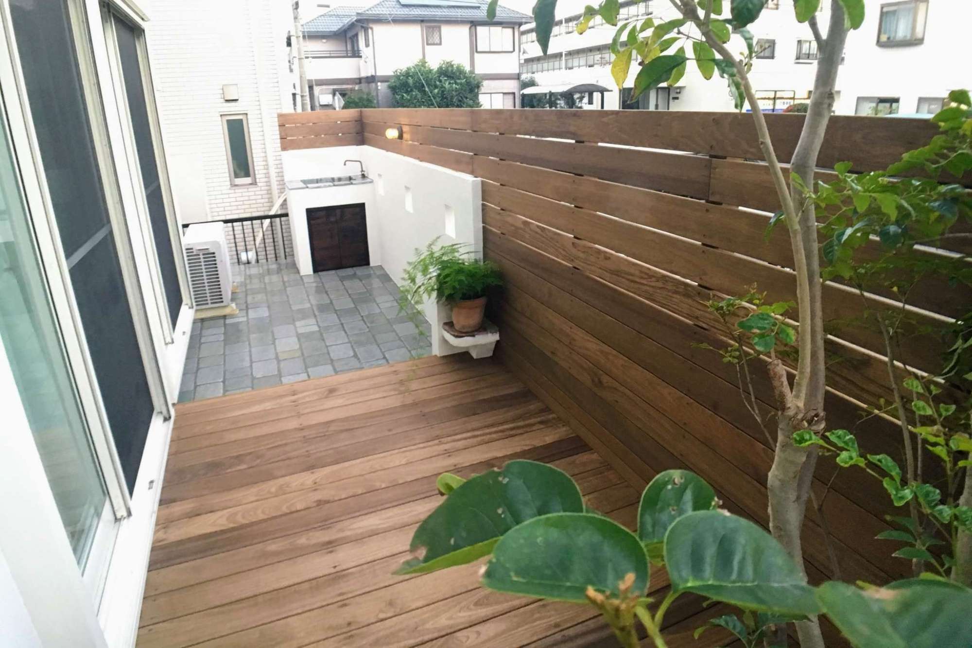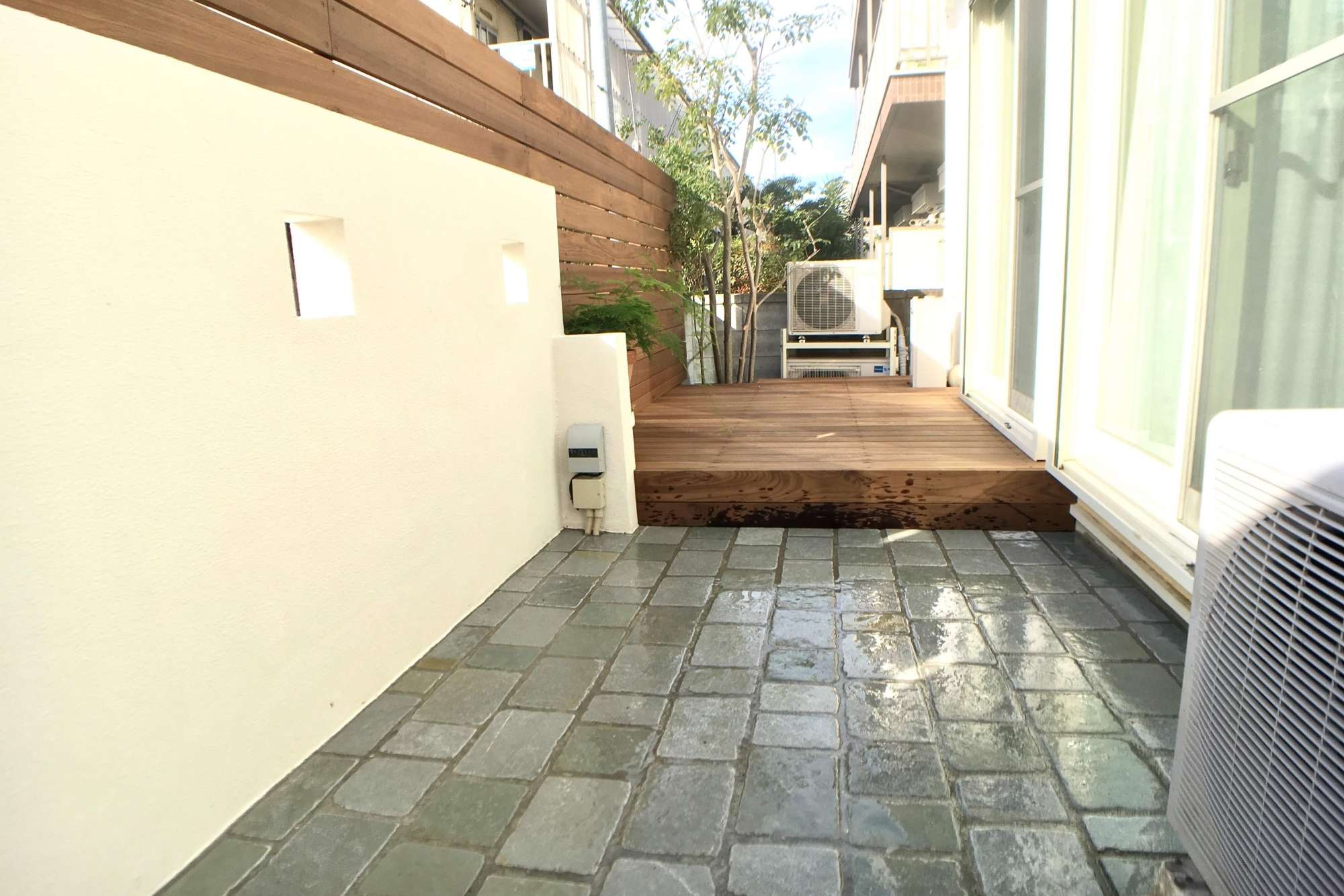 石張り・ウッドデッキの明るいローメンテテラスへ