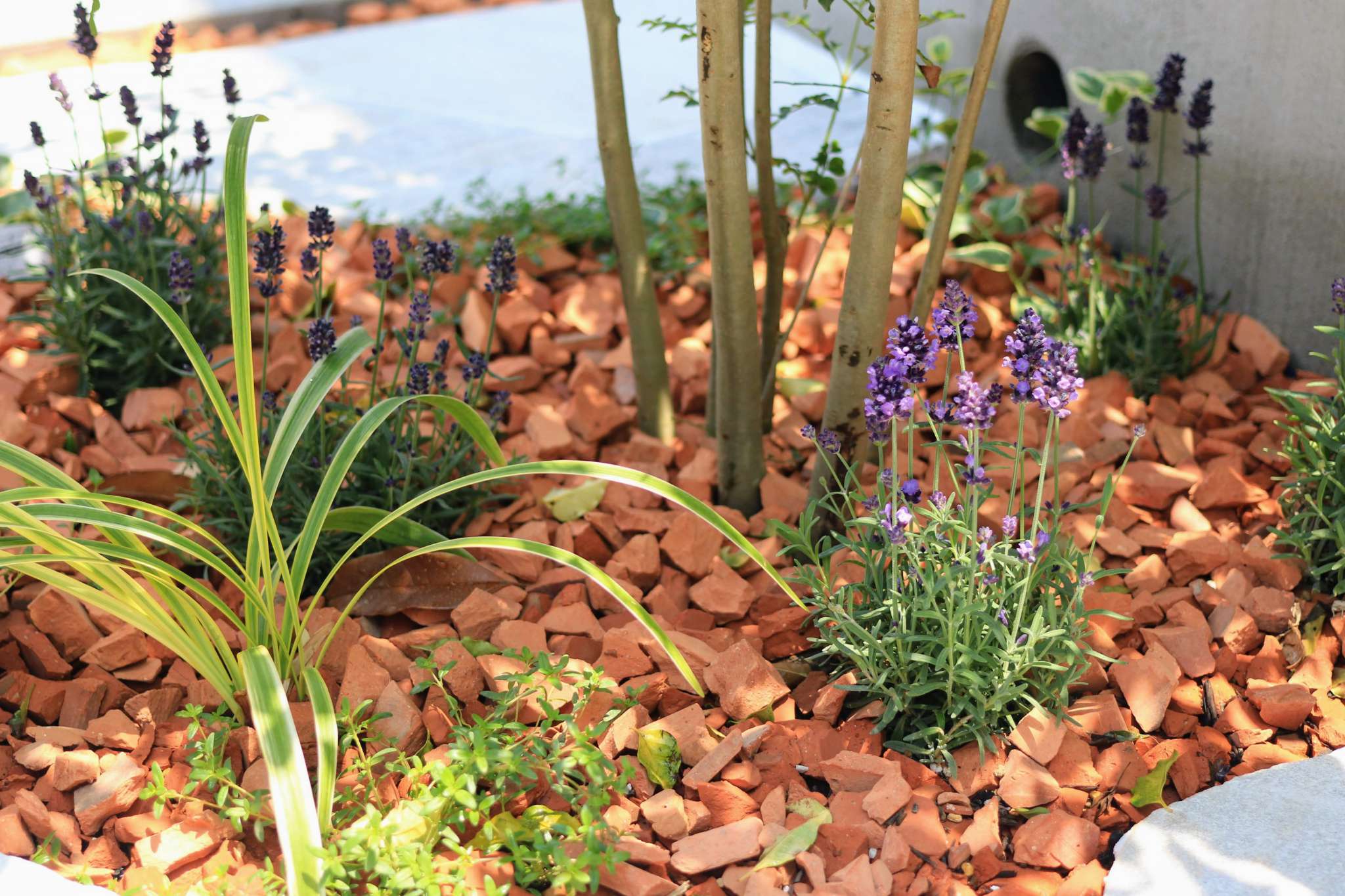 樹木と枕木材のセミクローズド外構