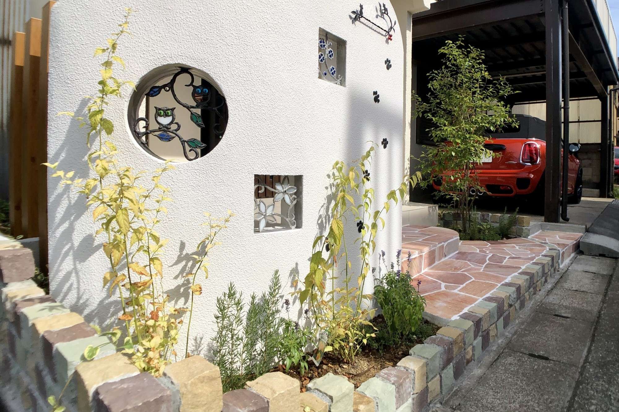 建物のリフォームを機に玄関前を明るくされたいとのことだったので、オープン外構へリフォーム工事を行い、ナチュラルで可愛らしいデザインを取り入れました。