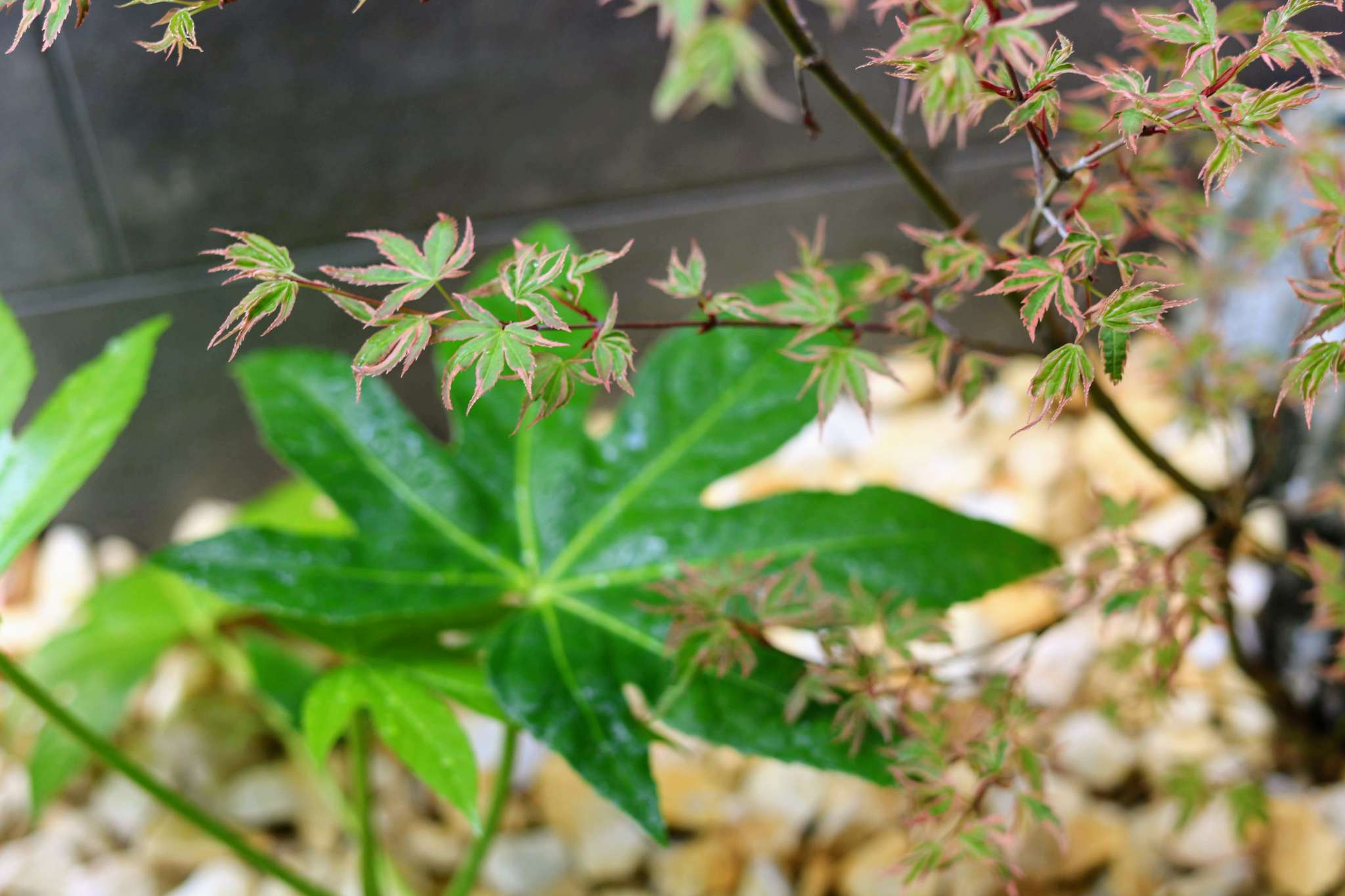 白い壁で直線的な建物へ、和の趣が感じられる外構プランを施工させて頂きました。