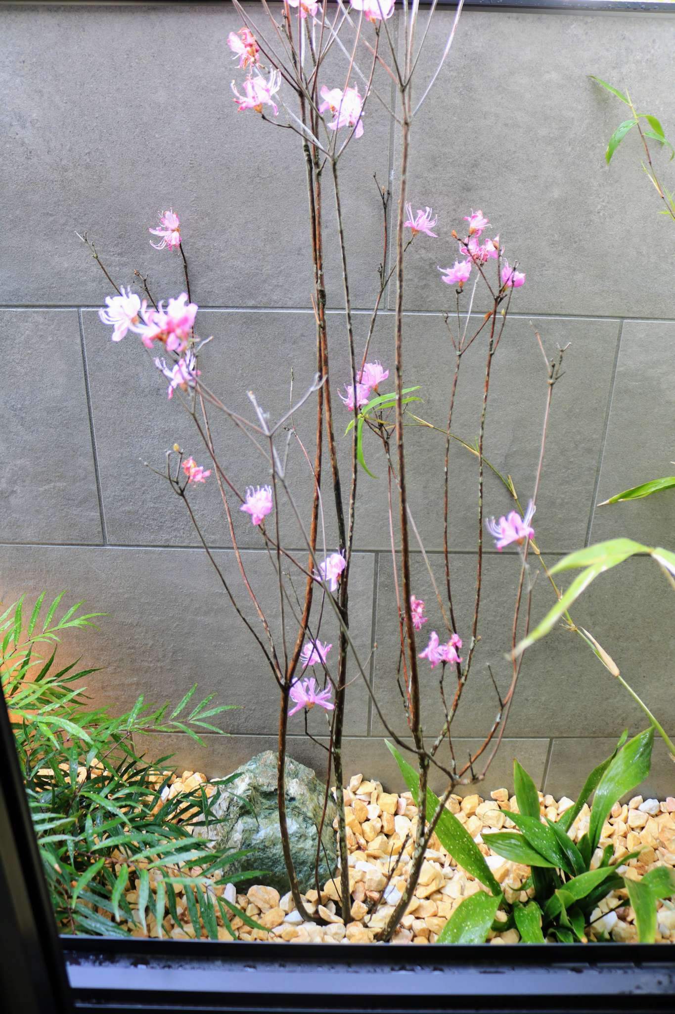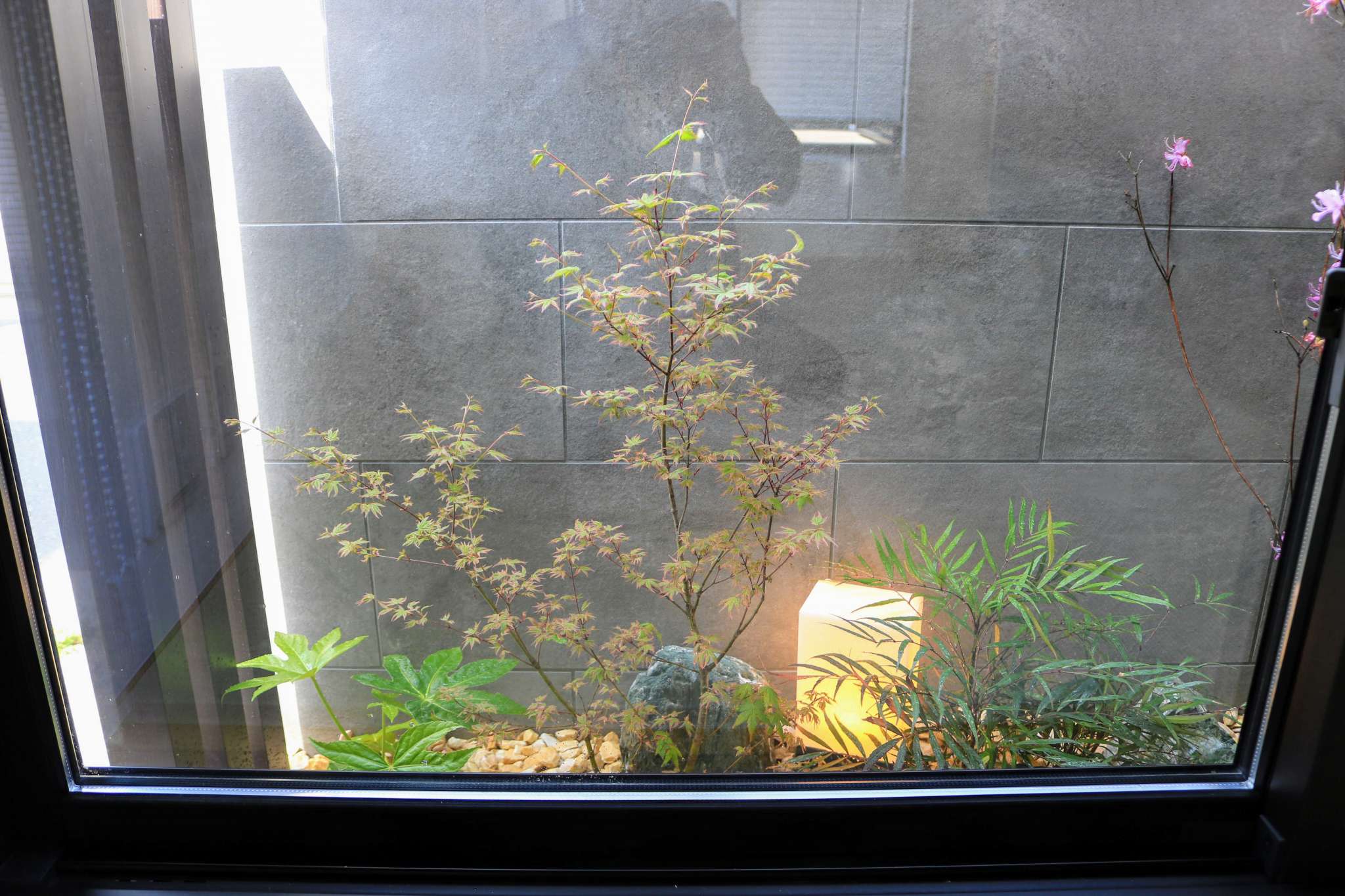 また、和室窓前側の門袖裏には、地窓から見える坪庭コーナーがあり、室内からも和の趣や季節感が感じられるような要素となりました。