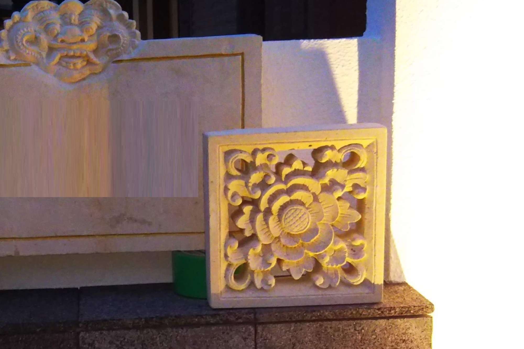 大きな顔のレリーフは動いたり落ちたりしないよう、見えない部分で固定してあります。