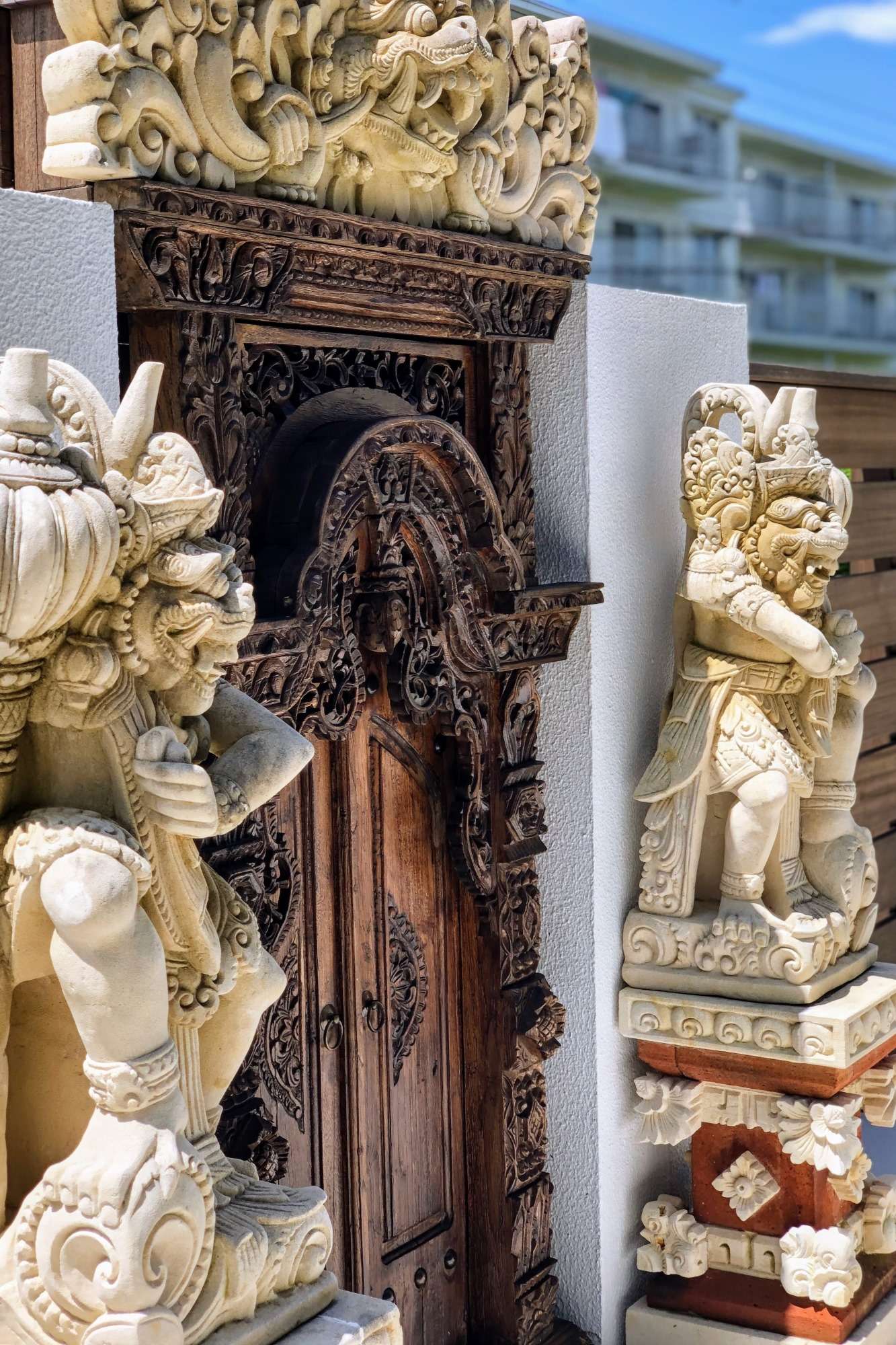 こちらはバリにあるゴア・ガジャの遺跡に似たレリーフを対に飾ってあります。迫力のある表情や細かくほどこされた彫刻には見る人を惹きつける力がありますね。