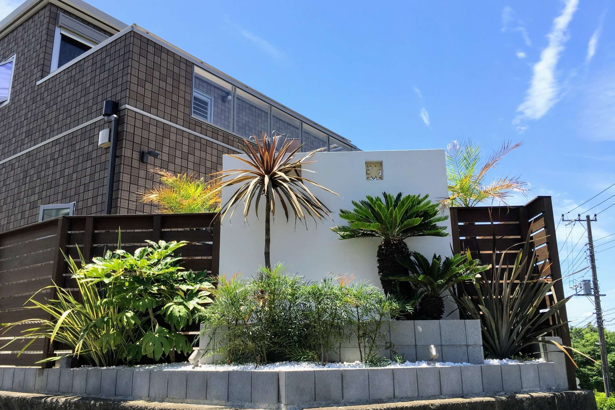 植栽もエキゾチックな雰囲気を醸し出すよう、東南アジア原生の葉の濃いもの、シャープなものなどを取り入れてあります。