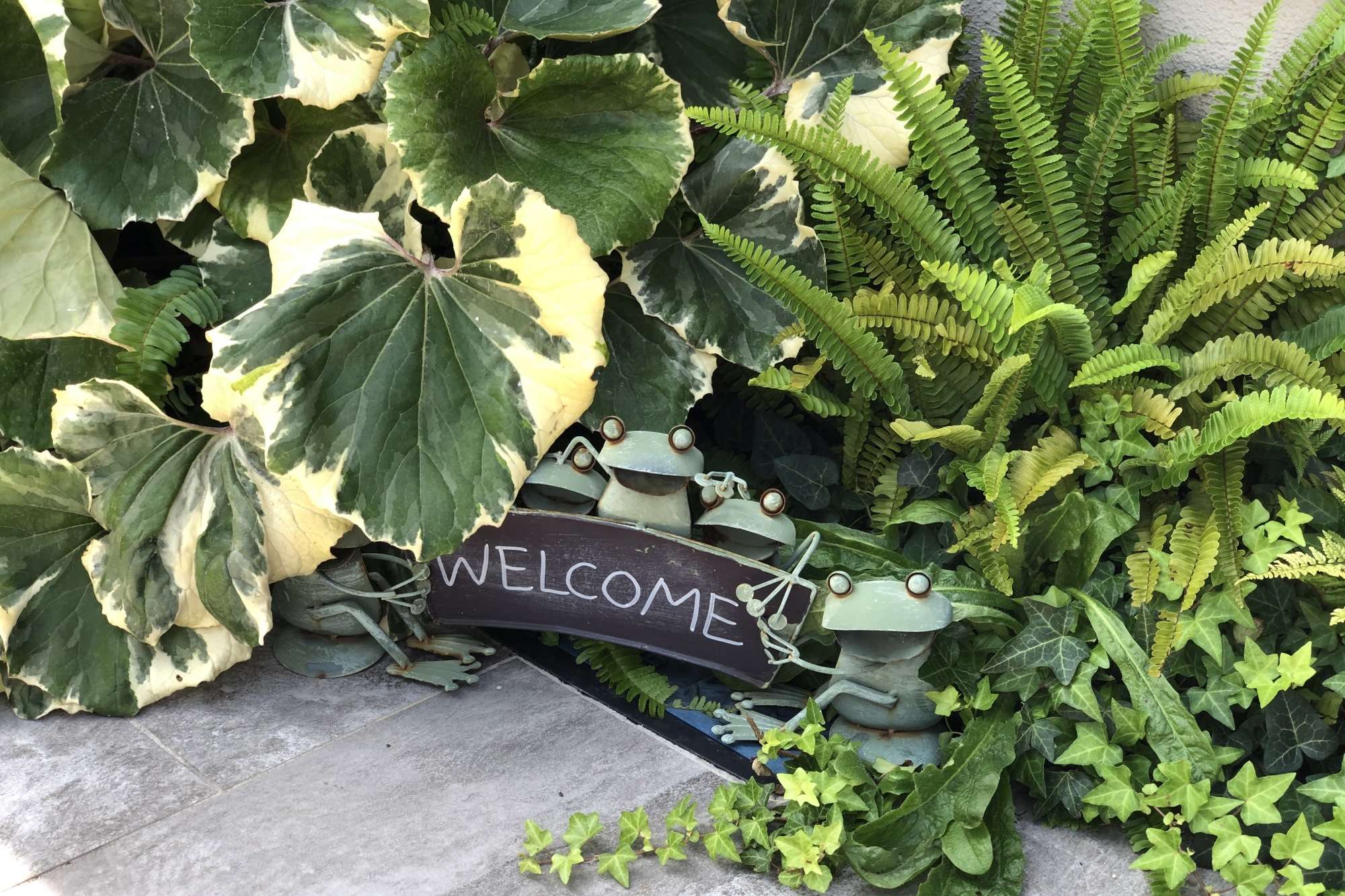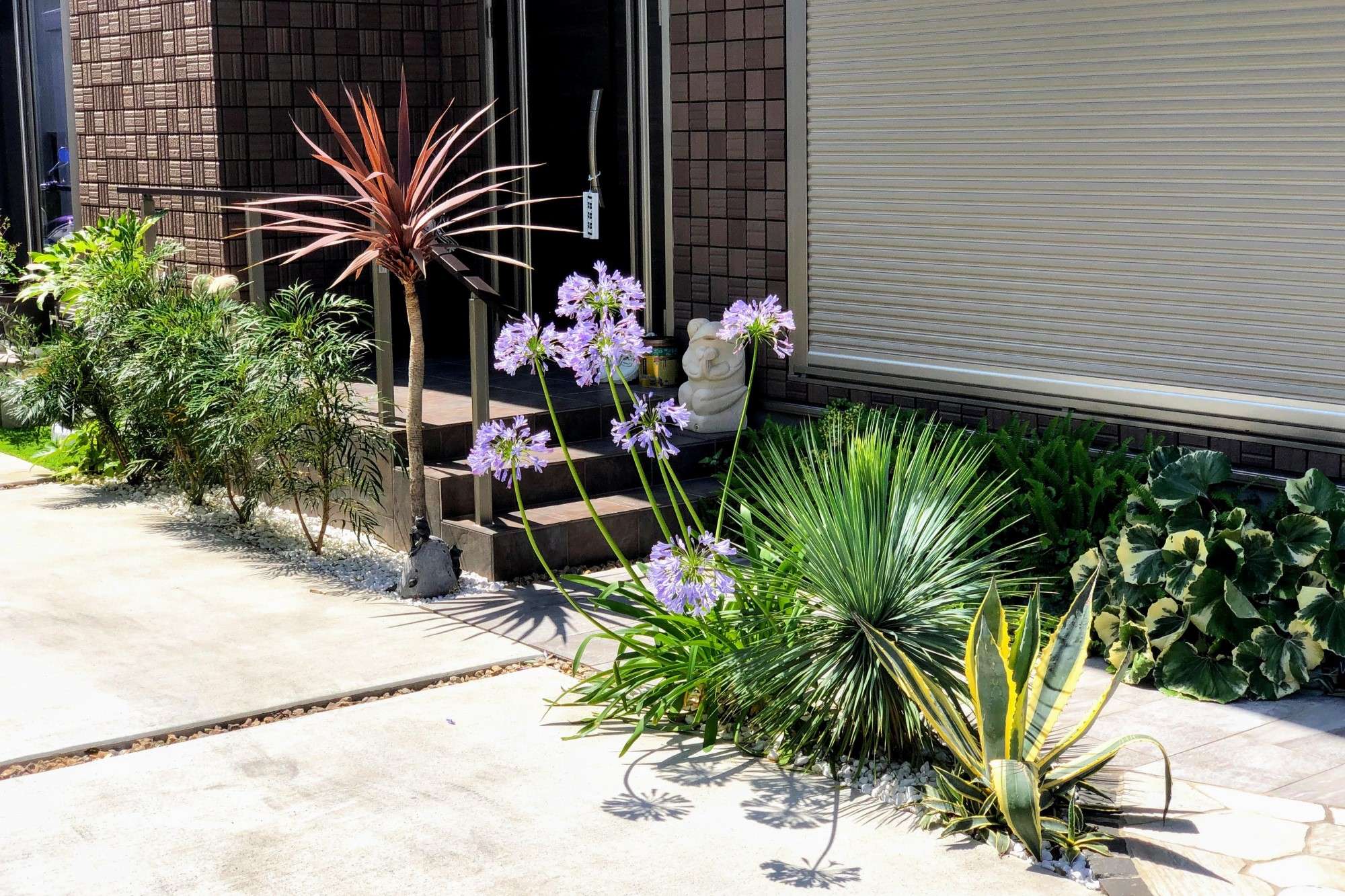 東南アジアのエスニックな香り漂うようガーデンテラスやアプローチ。