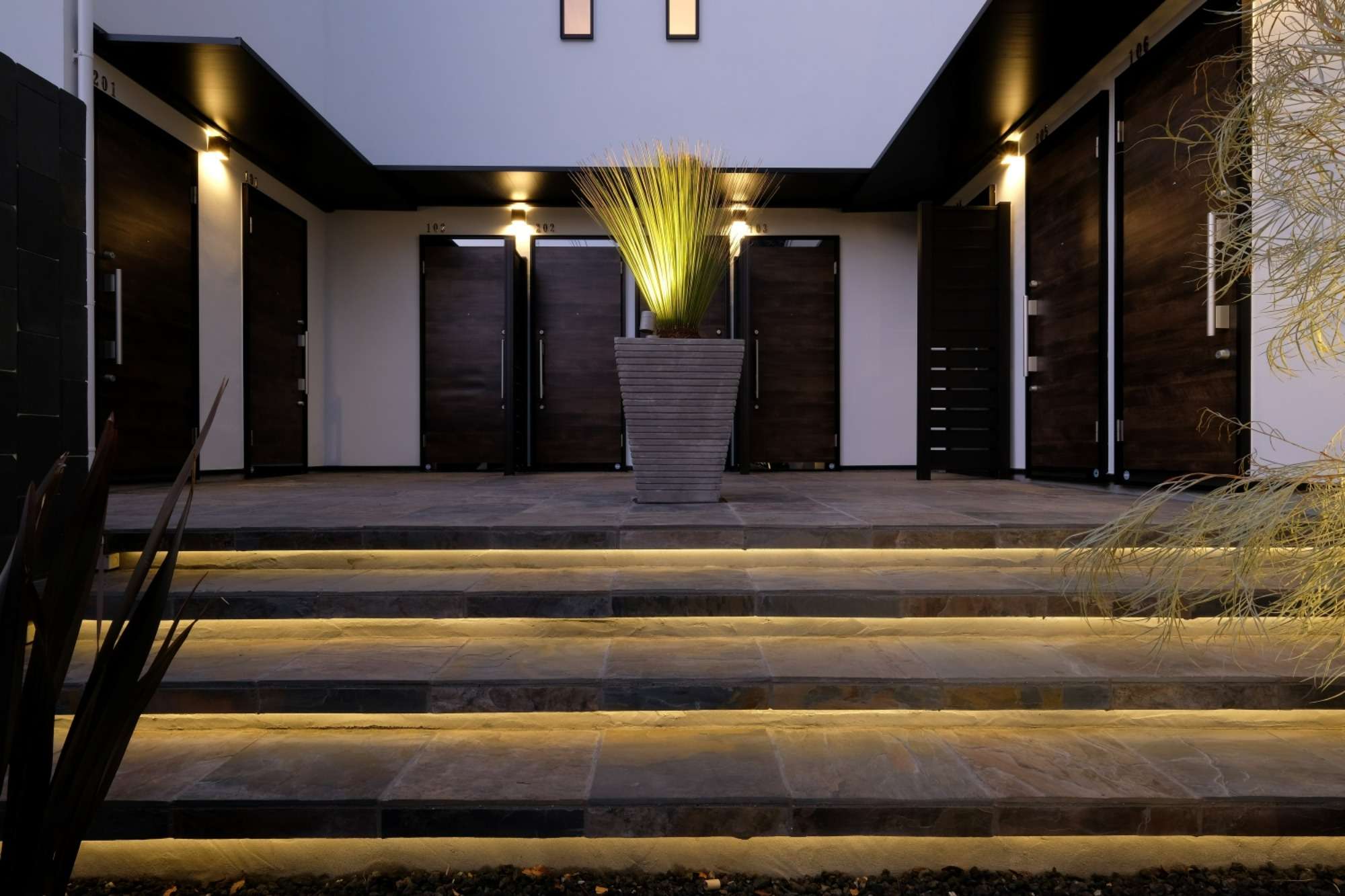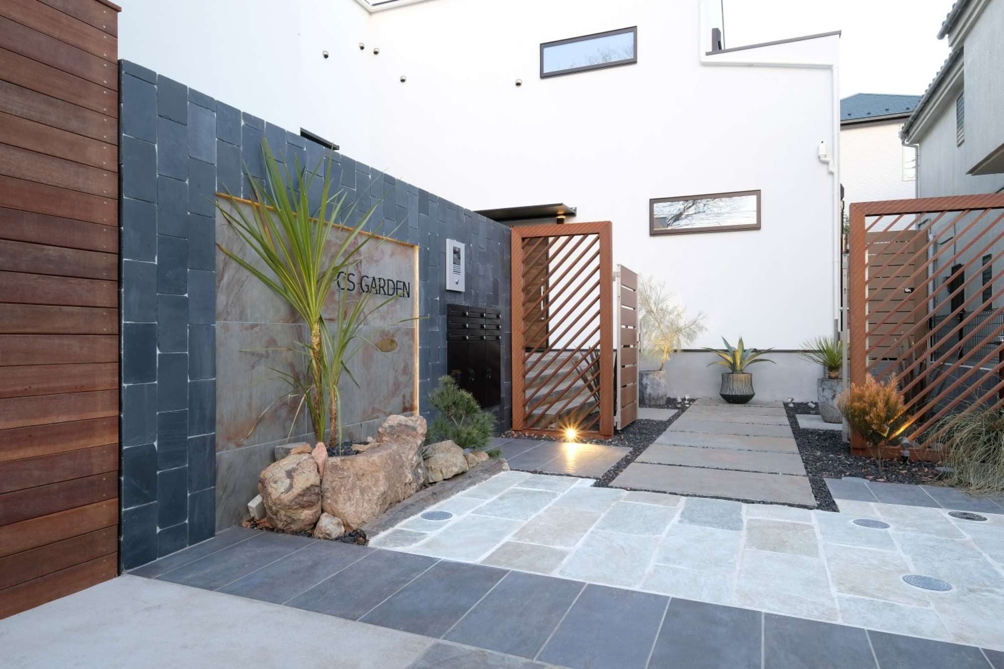 ただ、その通り過ぎる短い時の中、どんな時刻、いかなる天候であっても、住まう方にゆとりを感じてもらえるようにと思いを込めて、外構デザイン・設計・施工をさせて頂きました。
