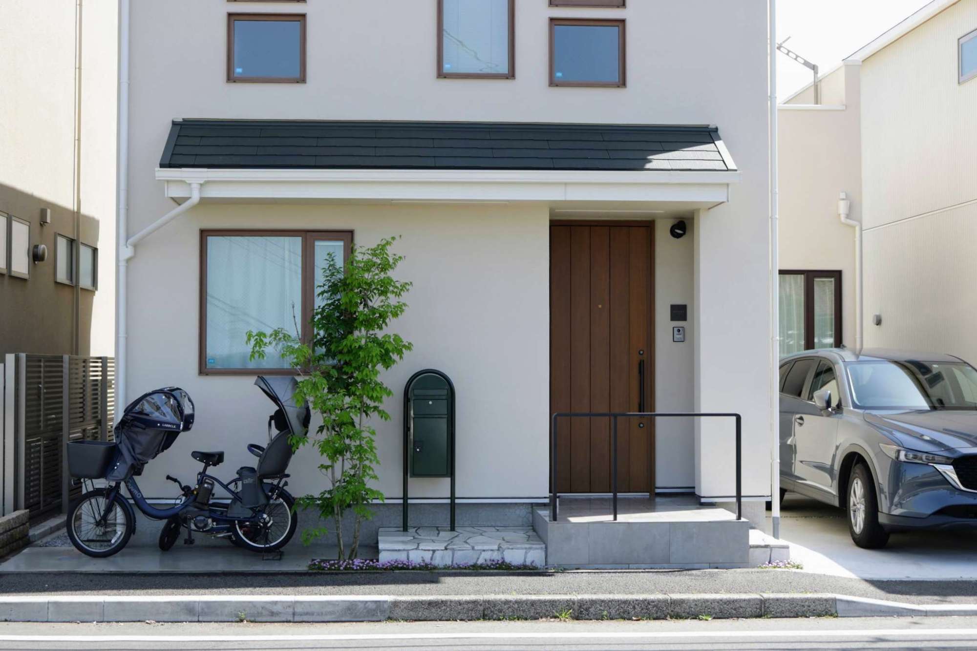 シンボルツリーに駐輪スペースとアプローチを区切りの機能を持たせています