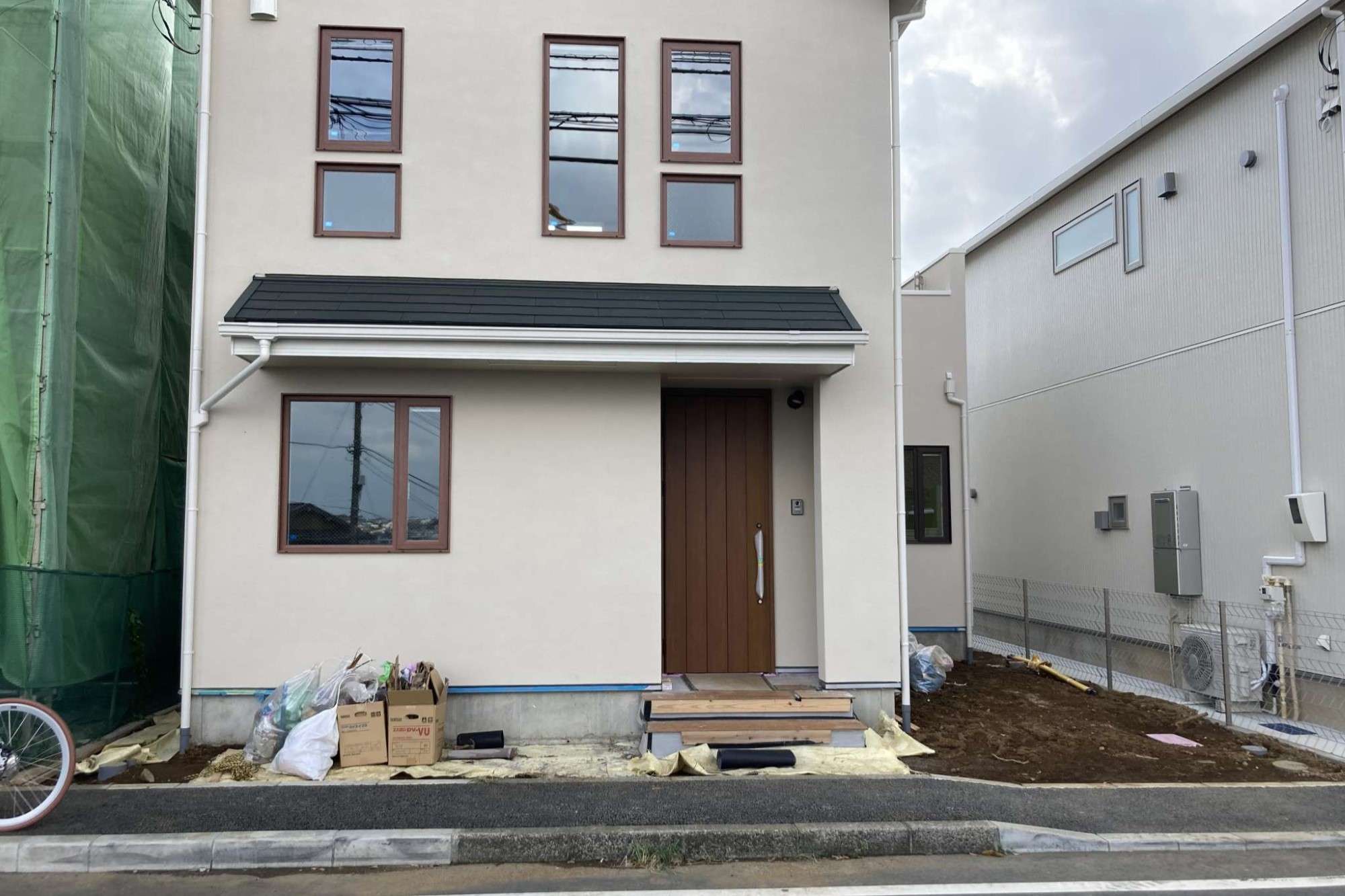 両サイドからアクセス可能な玄関ポーチ。有効間口が1m程度あるので、ベビーカーの出入りも容易です