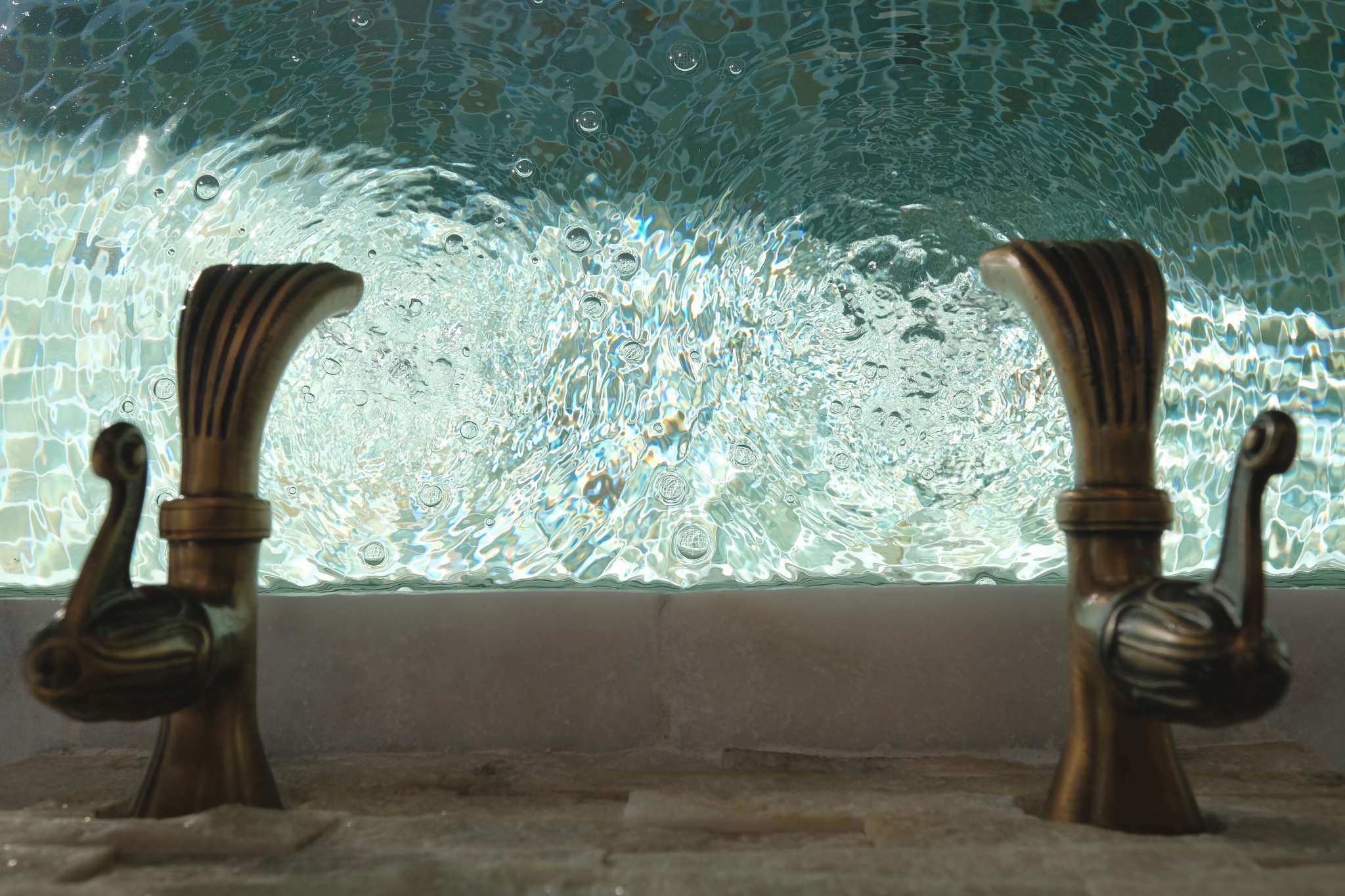 水の透明感、柔らかな石肌、水面の煌めき。時の流れを忘れてしまうような空間。