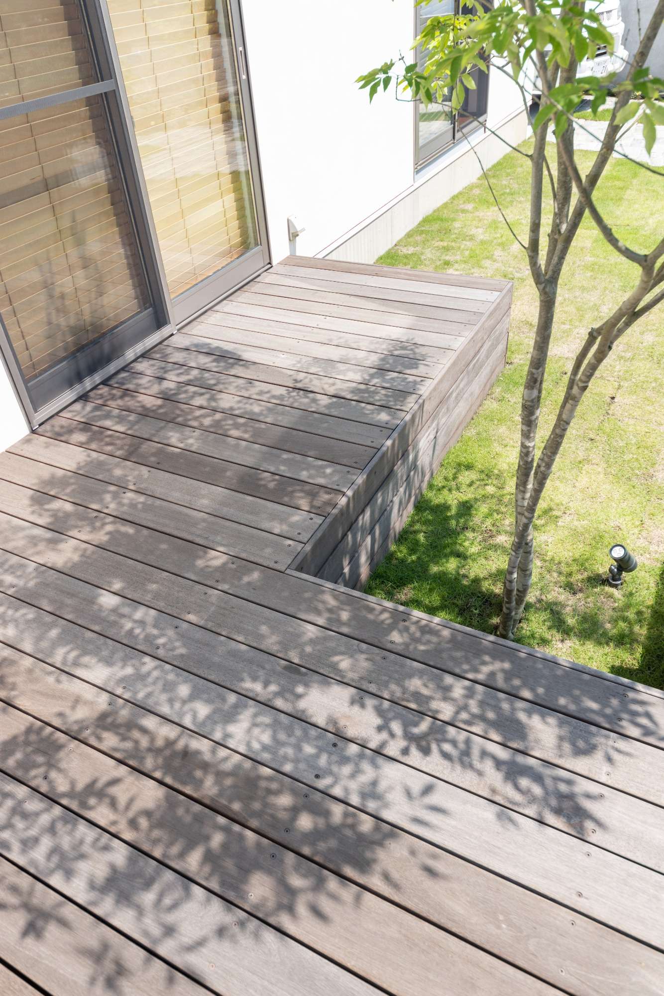 ウッドフェンスはウリン材を使用。お庭をドッグランにするときだけ地面に作った細い溝に差して使う仕様です。施主様とどのような仕様にするか相談しながら設計を進めました。フェンスは施主様自らが造作されています。