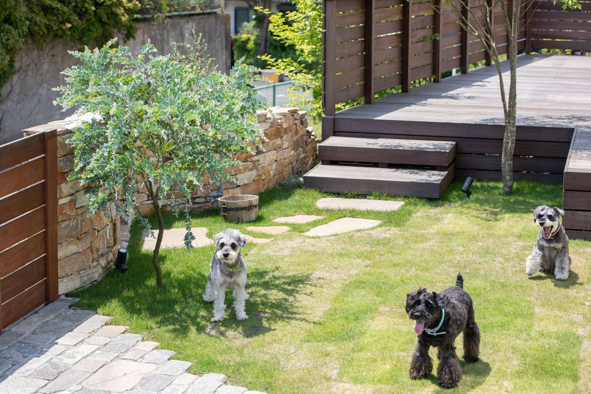 お庭は愛犬たちが安心してのびのびと過ごせるように、ドッグラン仕様となっています。