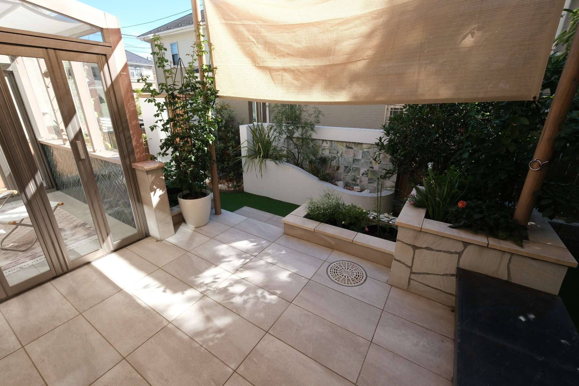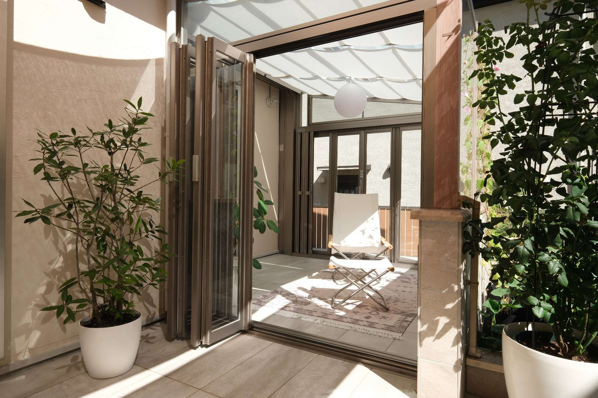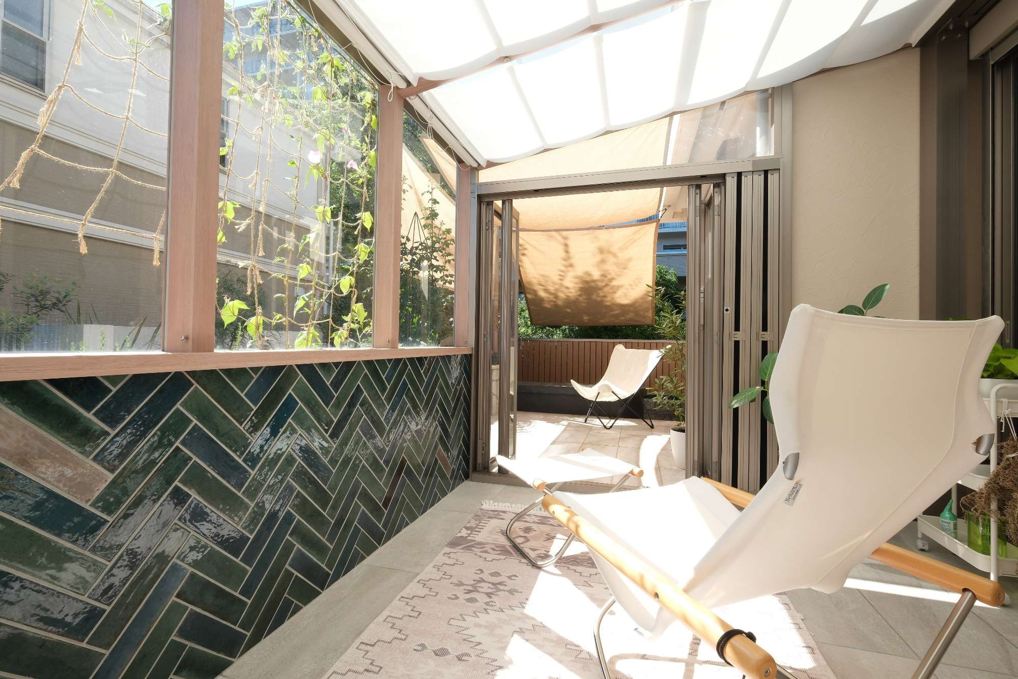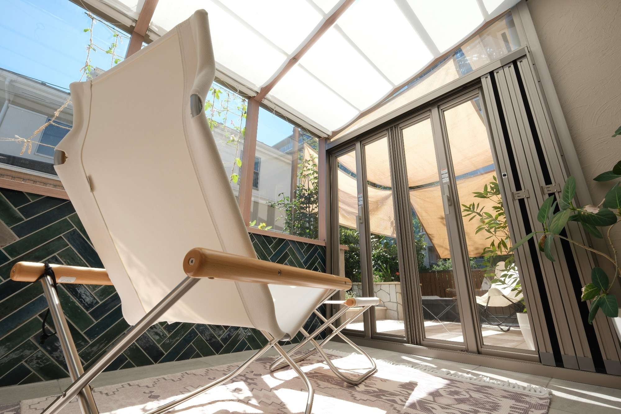ガーデンルームは締め切ることができるので、猫ちゃんがお外へ出ることなく、お庭を楽しめるような場所でもあります。また、ゆったりと寝ころべるリクライニングチェアを採り入れたり、シェードで陽射しを和らげたりしてみました。