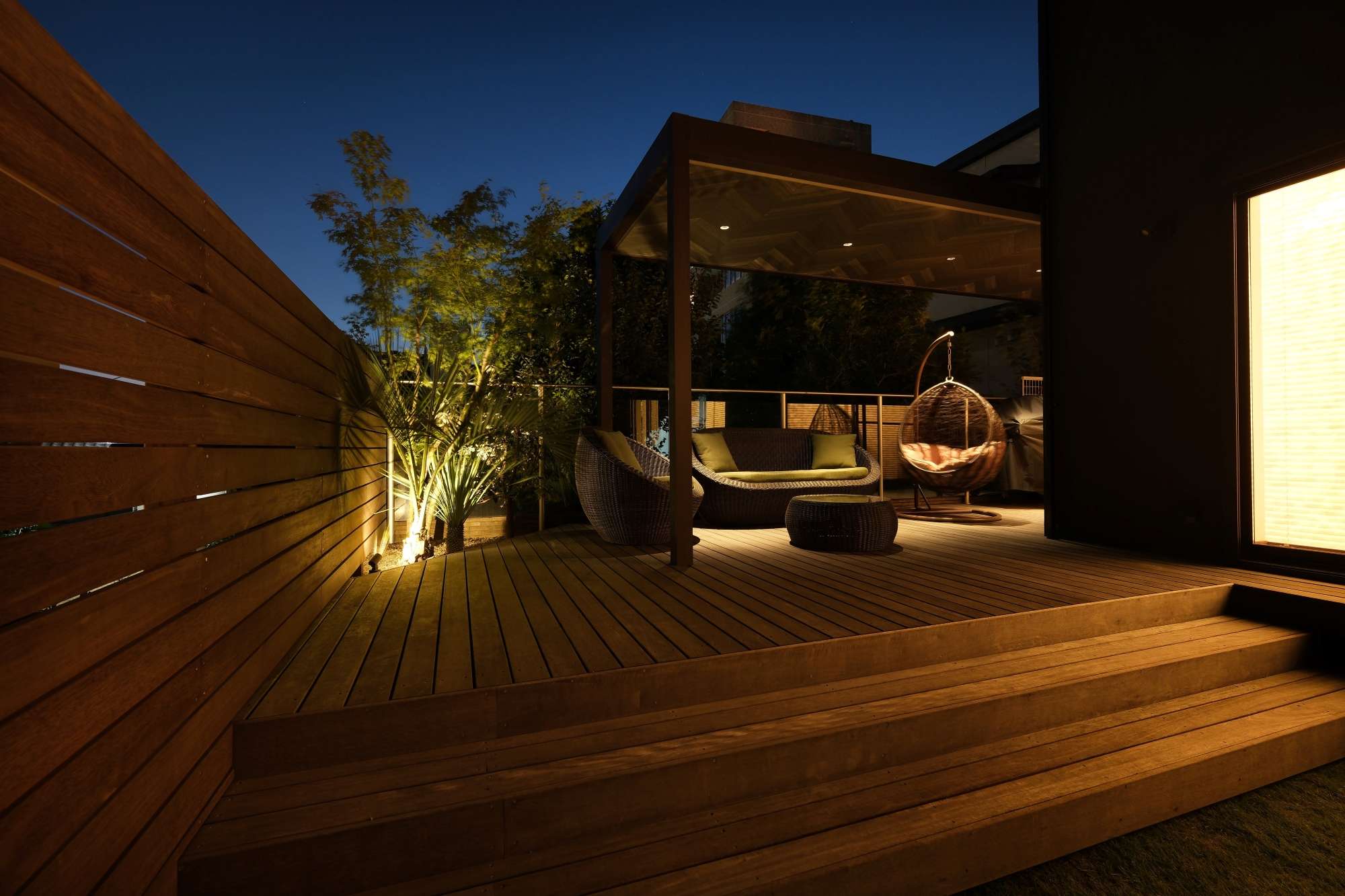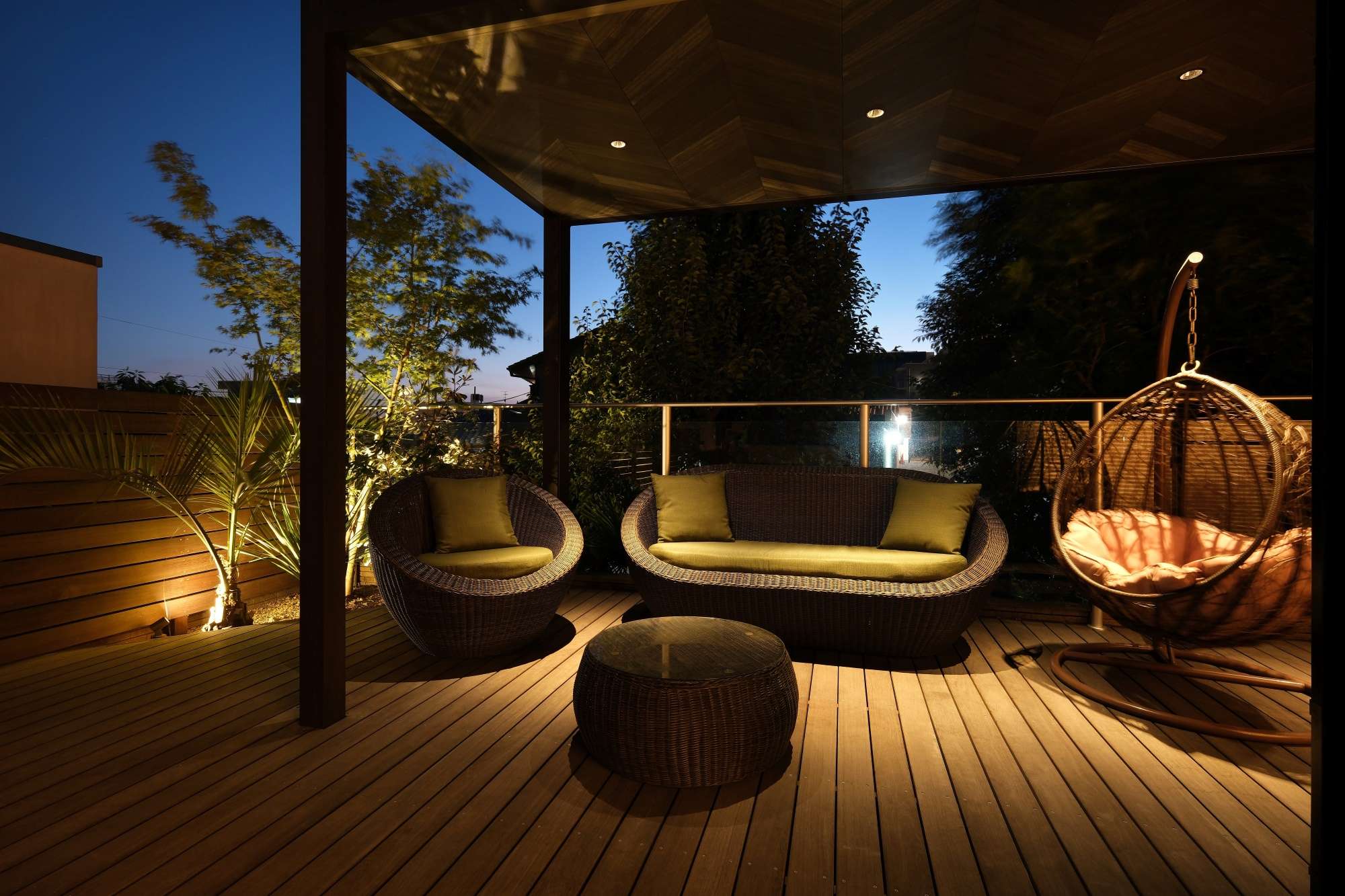 夜景を眺めながら過ごせるアウトドアリビングのご紹介です。