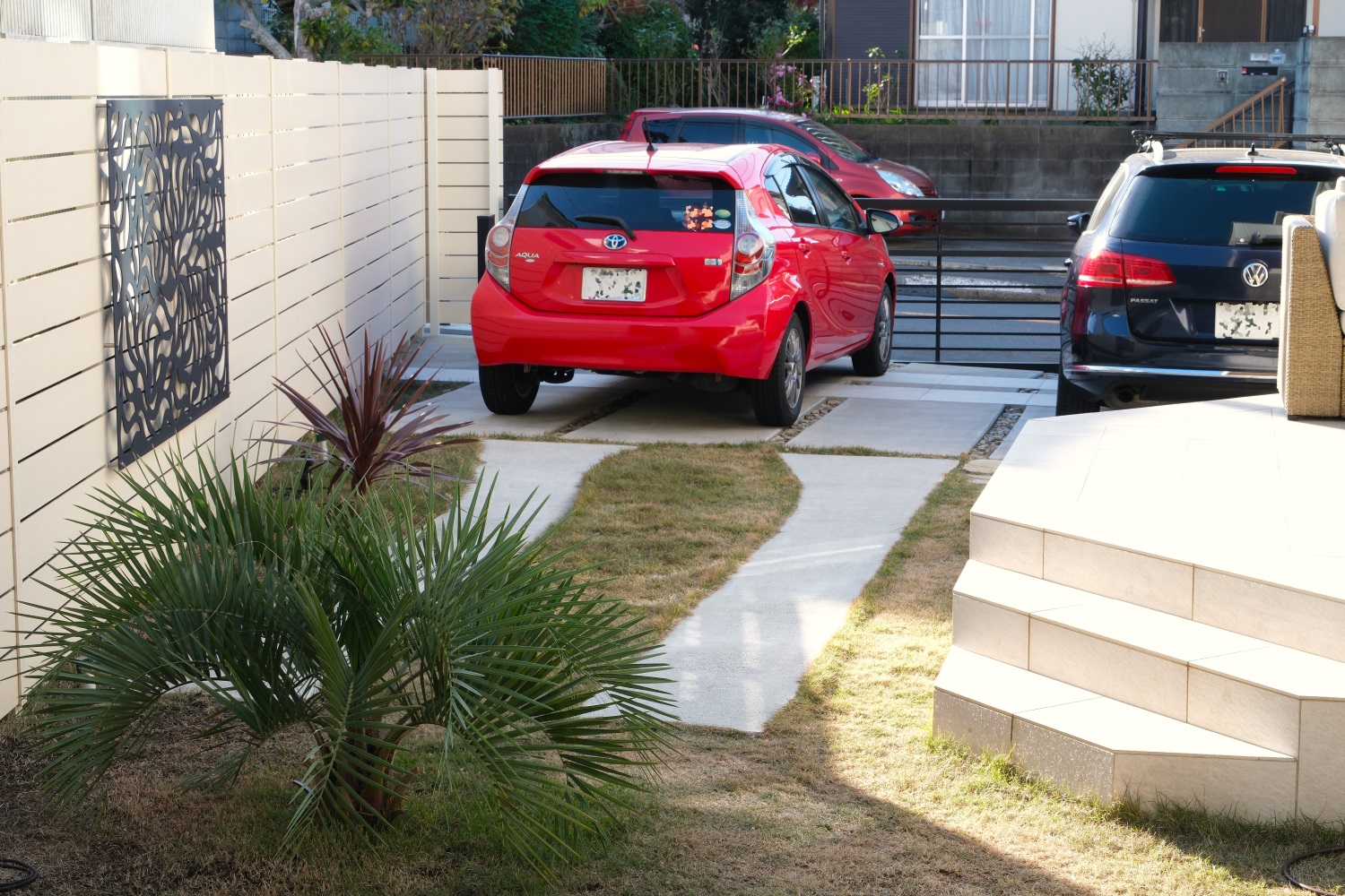 駐車場には違う素材の織りなす表情を加えます。