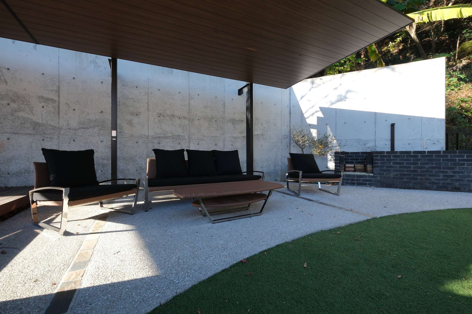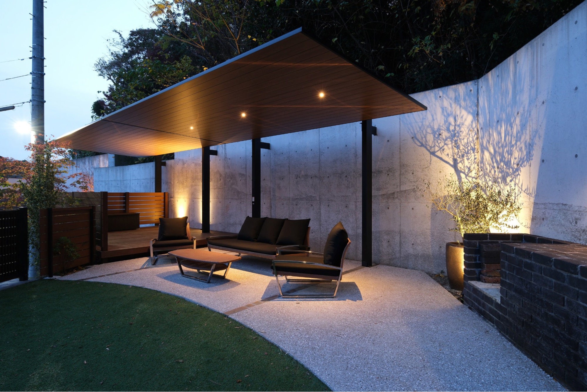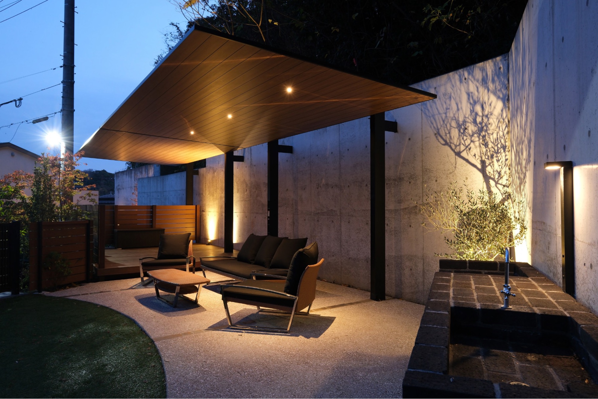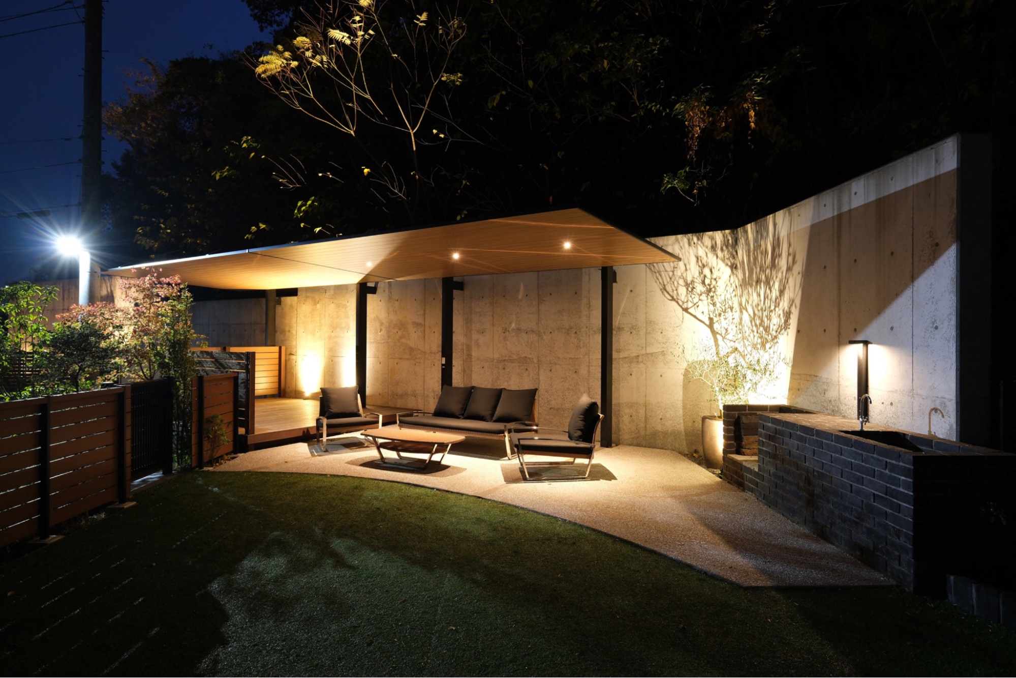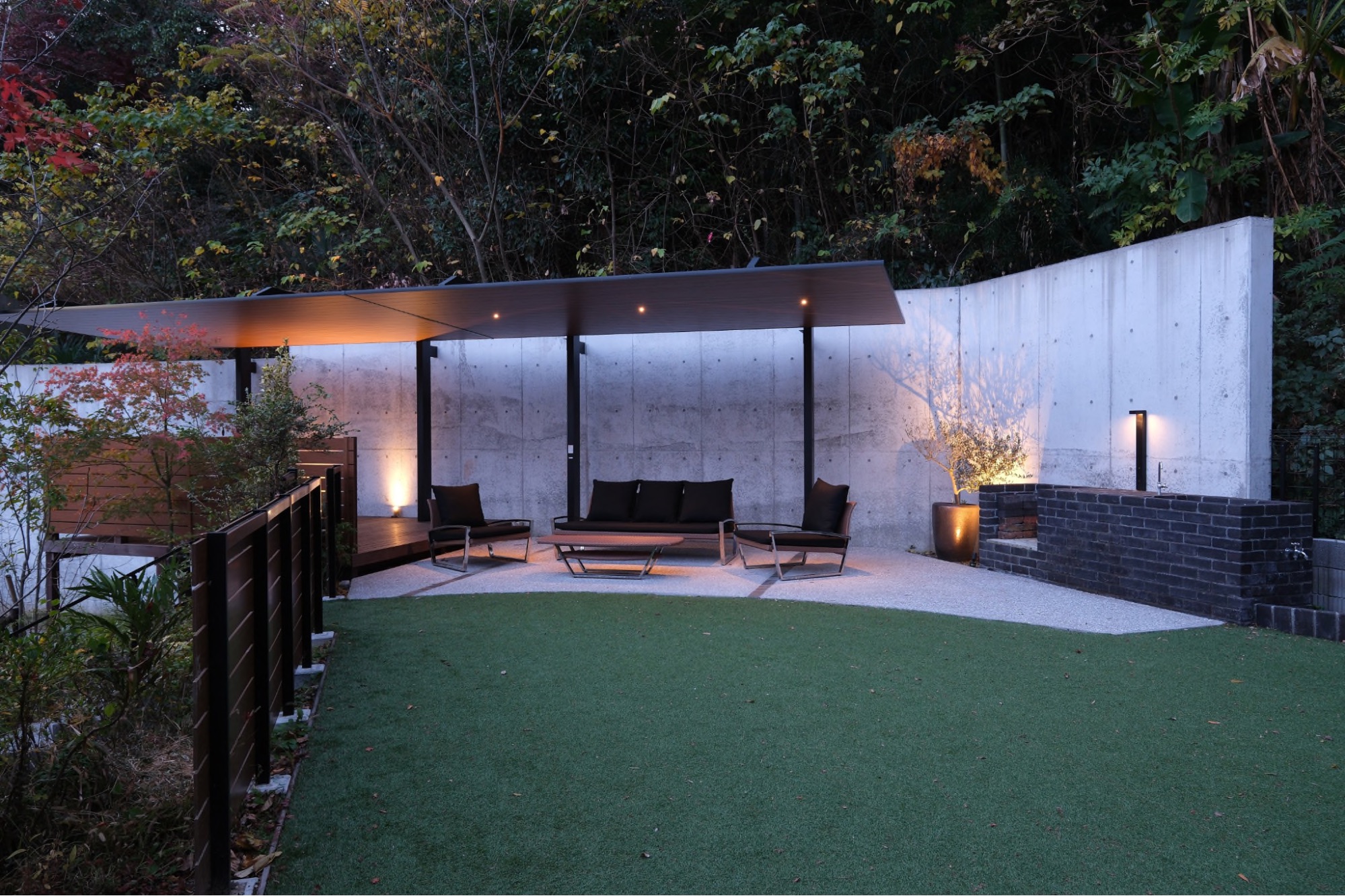 また準備と後片付けが楽なレンガ造りのコンロを併設し炭火焼きのバーベキューを気軽に楽しめるようにしました。
