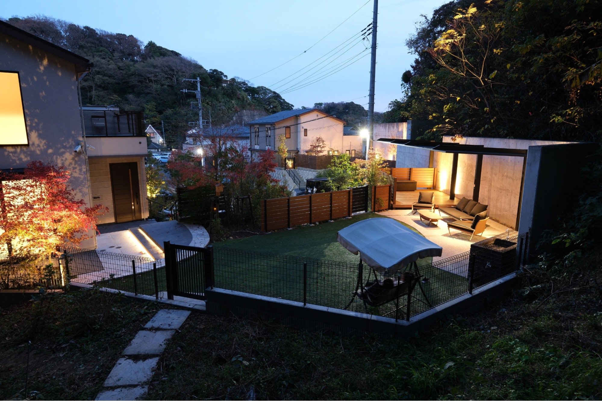 温暖で自然豊かな鎌倉市にて、子供たちがのびのびと遊べて、アウトドアオフィスとしても活用できる空間造りをさせていただきました。