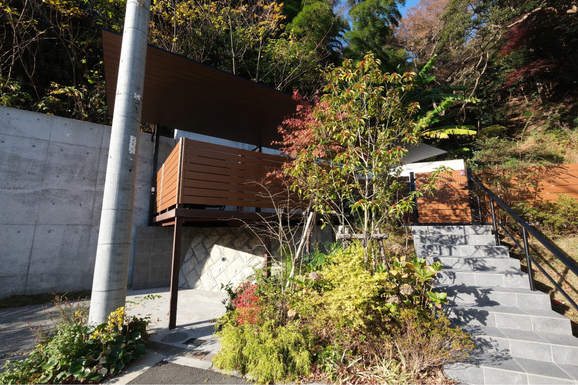 元々はメッシュフェンスで仕切られていた、建物がある敷地・庭用の敷地・裏山(所有地)の3つの敷地を使います。