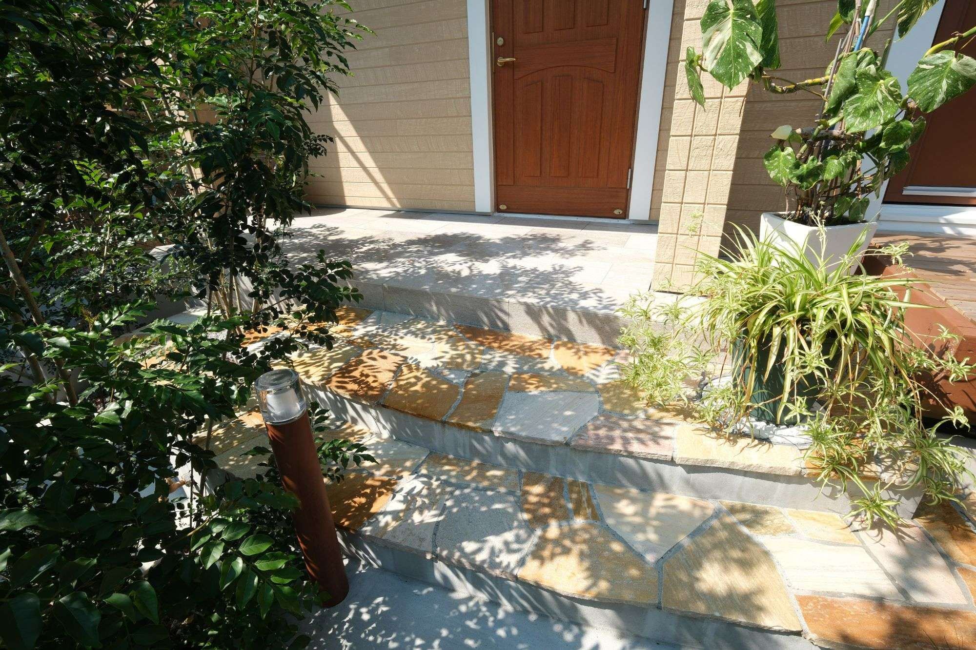 玄関までのアプローチを蛇行しながら木々を抜けていきたいとのご要望をいただきました。