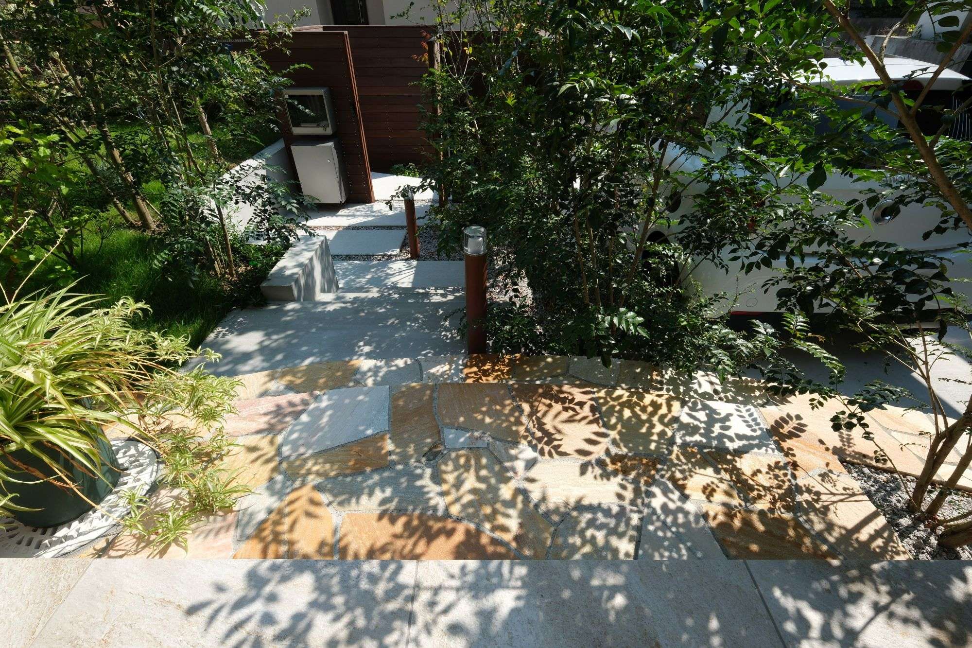 ポストや宅配ボックスは門柱に埋め込み、中から荷物を受け取れます。