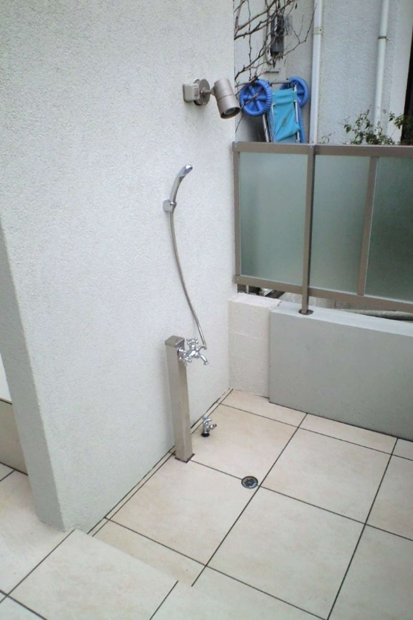 また犬好きの施主様の要望でワンちゃんの散歩帰宅後、家の中に入らず、外で足が洗えるようシャワーを取付させていただきました。