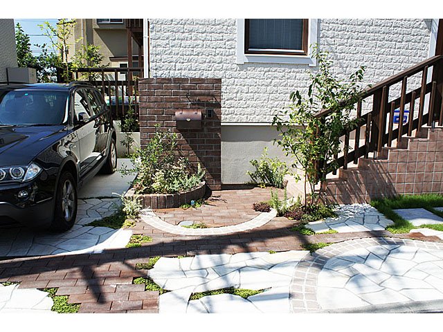 玄関周りは、レンガで円を描き、単調なデザインではなくナチュラルなイメージ。