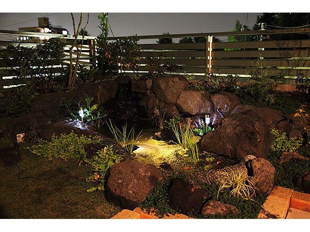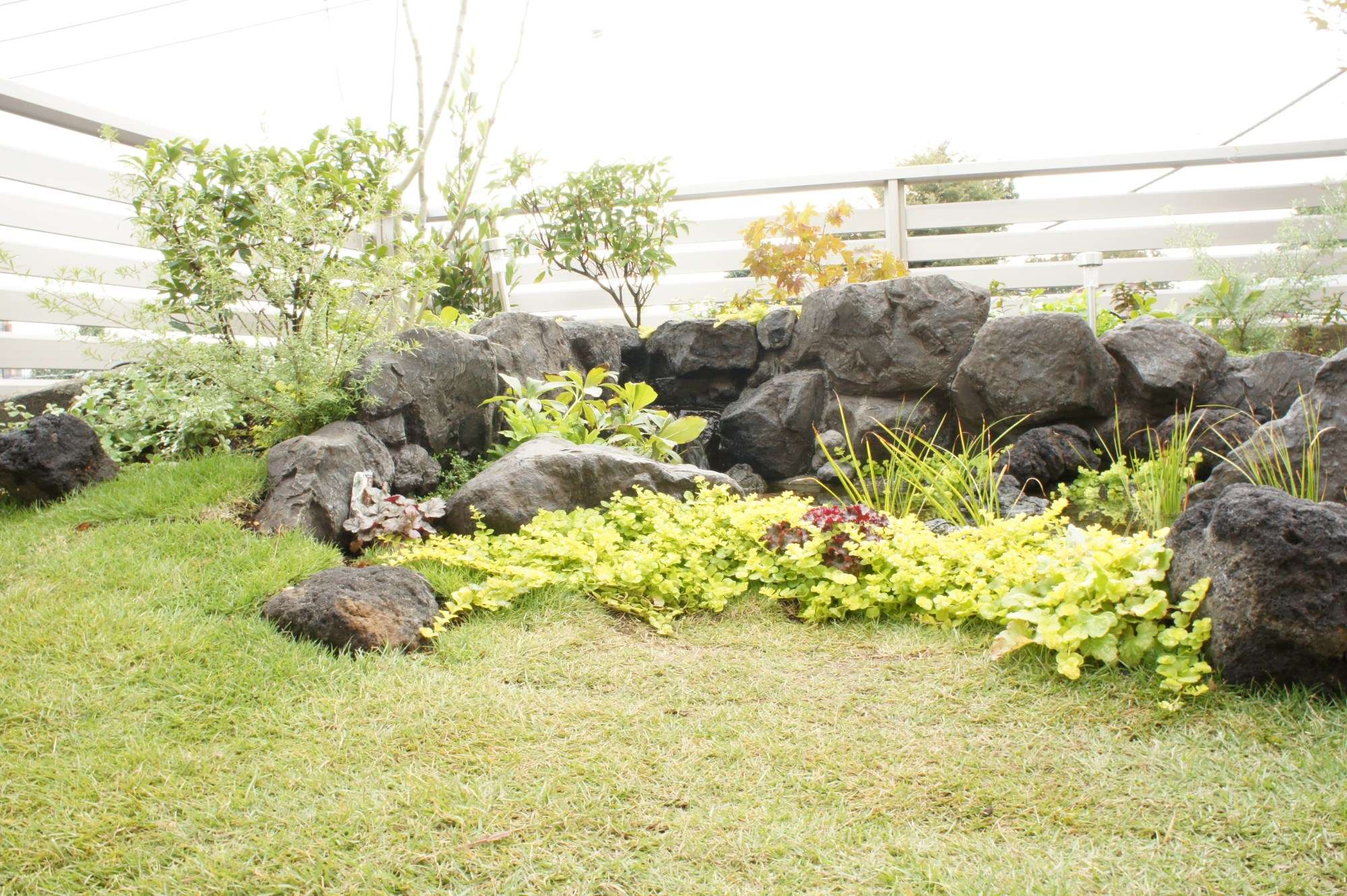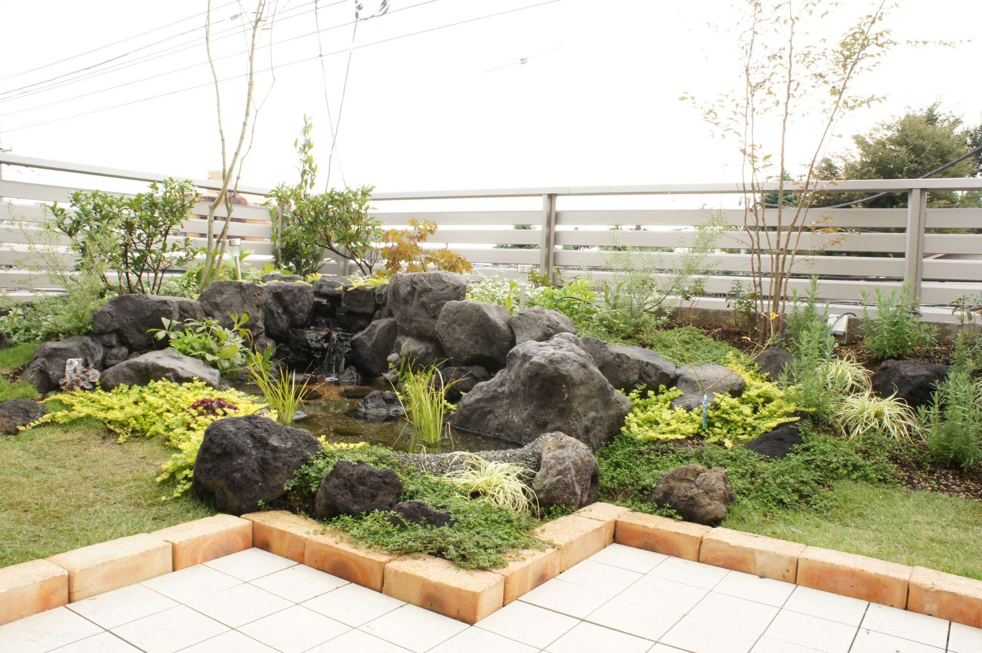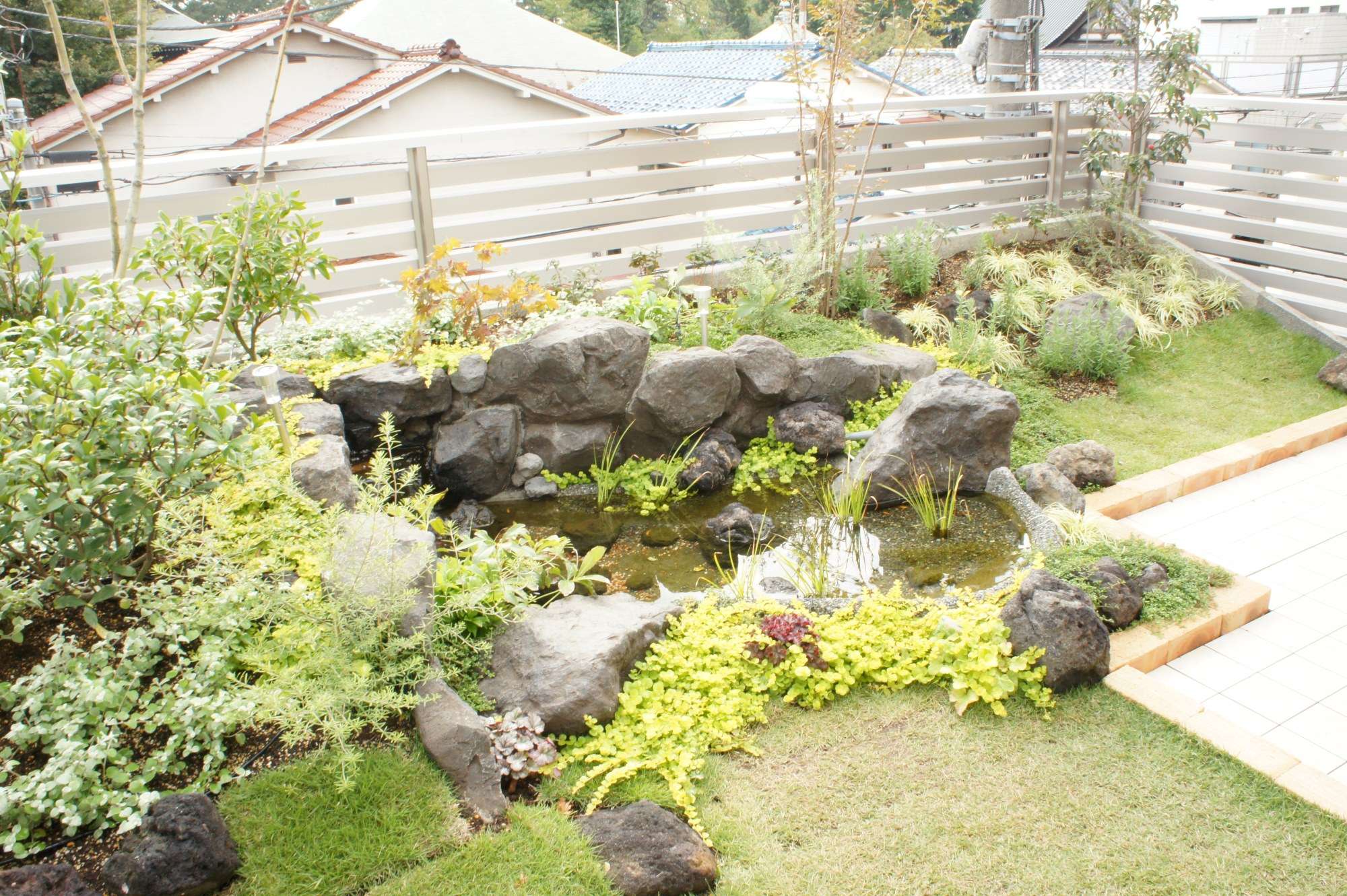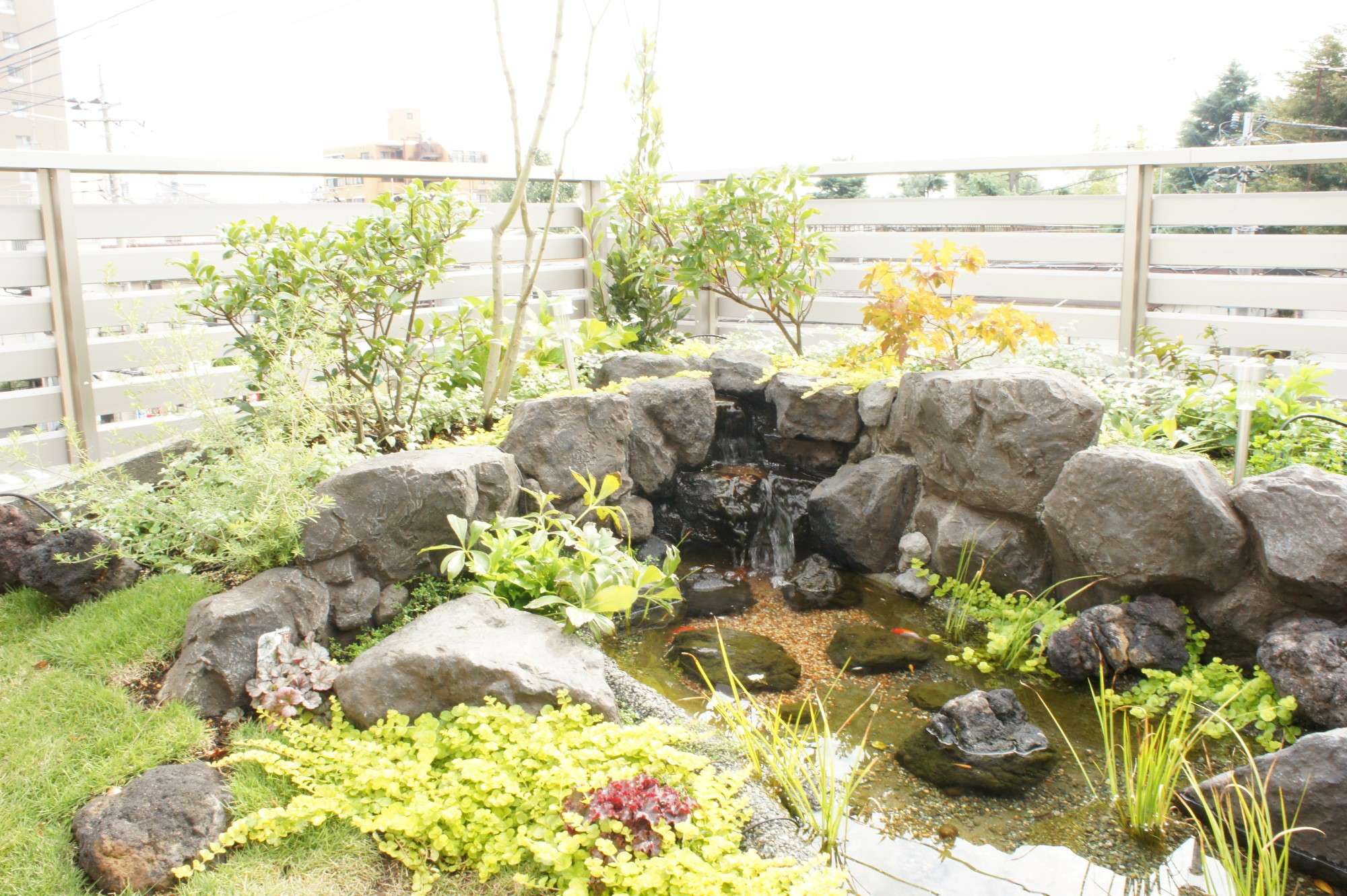 屋上を池と芝生とテラスで:施工事例:横浜の外構工事 お庭のデザイン 風知蒼