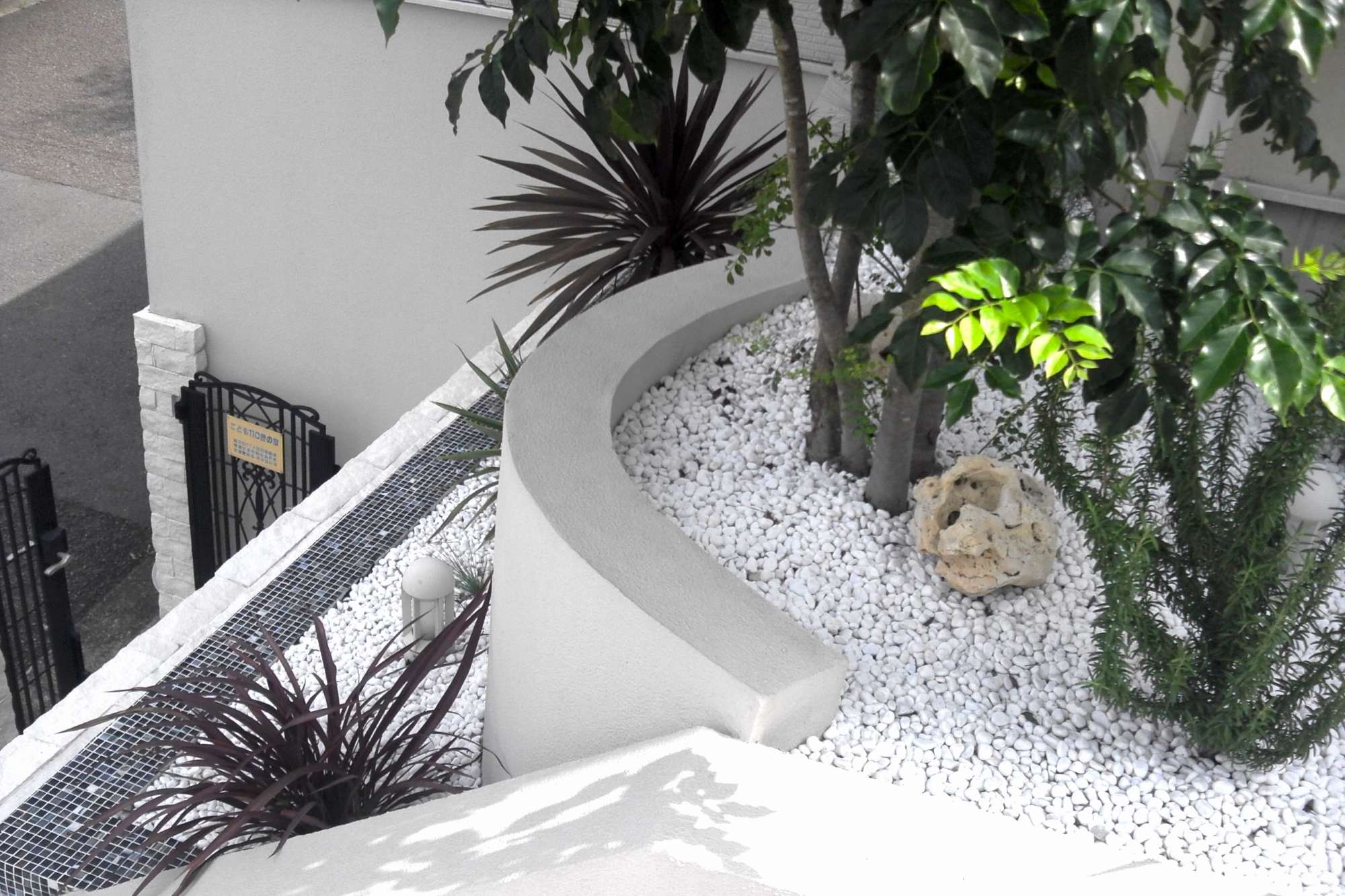 花壇には白砂利を敷き詰め南国植物(ドラセナ)を添えて、アジアンリゾートをイメージしております。